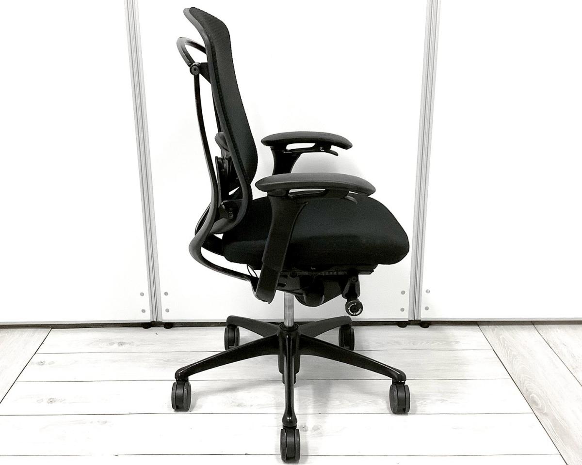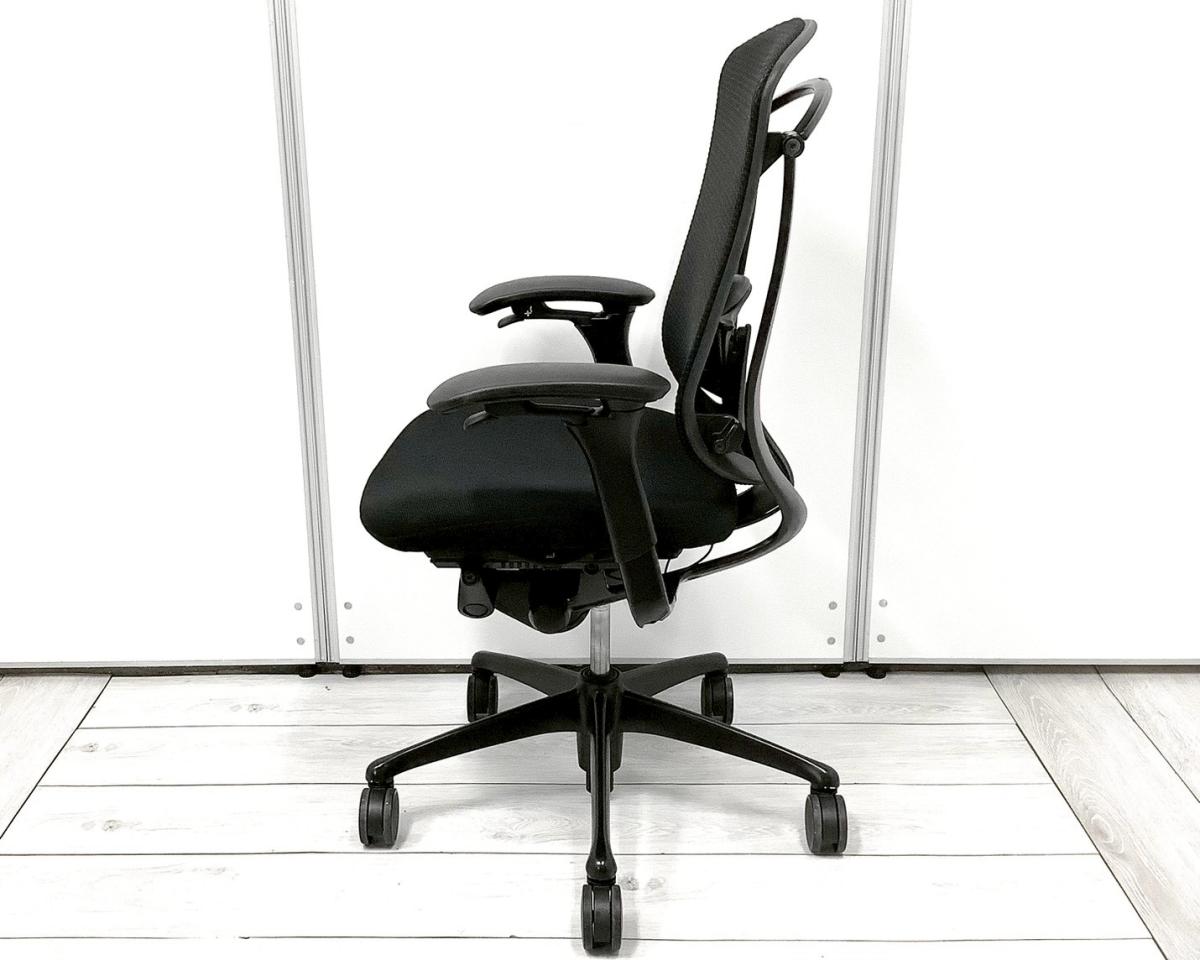 【1脚限定!】【世界で認められた革新的タスクチェア!人間工学に基づいた快適な座り心地を実現!】■オカムラ(okamura)製 コンテッサ(Contessa)チェア ハイバック肘付き 背面メッシュ ■可動肘・ランバーサポート・ヘッドレスト付き ■ブラック