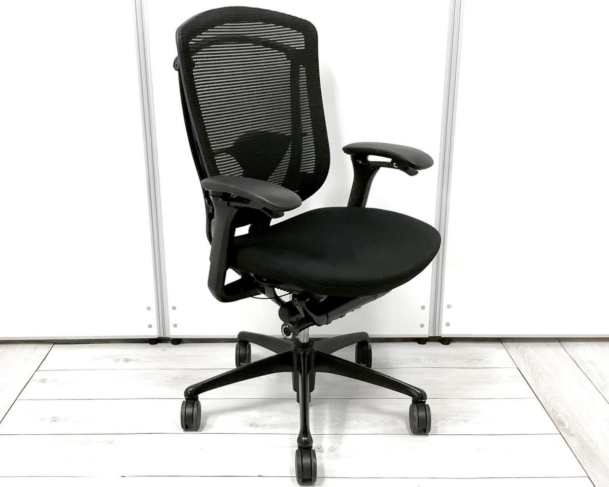 【上質なデザイン!高機能で快適な座り心地で快適キープ!】■オカムラ コンテッサチェア 可動肘付 ブラック ヘッドレスト付 ■ハイクラス!高級チェアでオフィスに至福のひと時を!【Okamura Contessa】