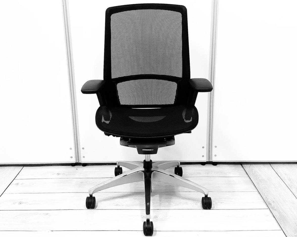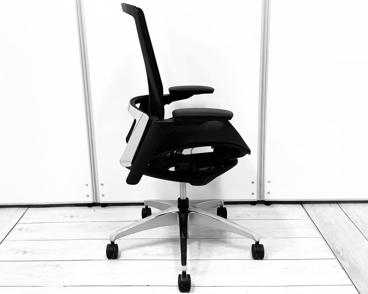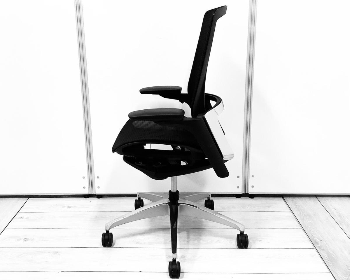 希少/イタルデザイン/高級 オカムラ(okamura)製 フィノラ(Finora)チェア 肘付ハイバック ■背・座面メッシュ ■可動肘 ■ブラック ■ITAL DESIGN