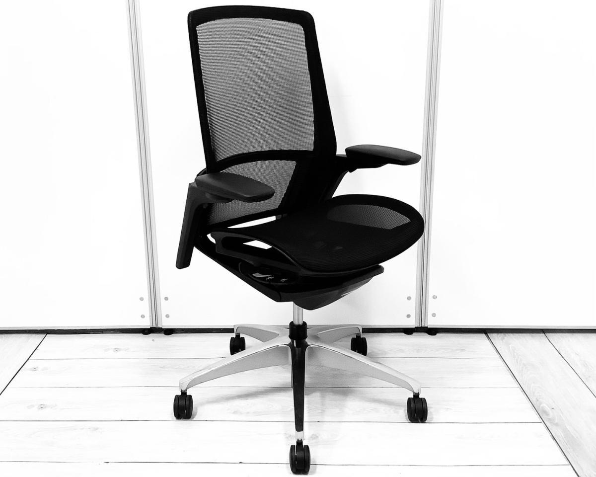 【クリーニング済/即納可能!】【2019年製】アジャストアーム 可動肘 アームレスト付 ブラックパネル ブラックボディ ブラック脚 オススメ(おすすめ) 大人気 ・Okamura/オカムラ ・Finora/フィノラ ※横浜本店撮影画像※- 横浜本店