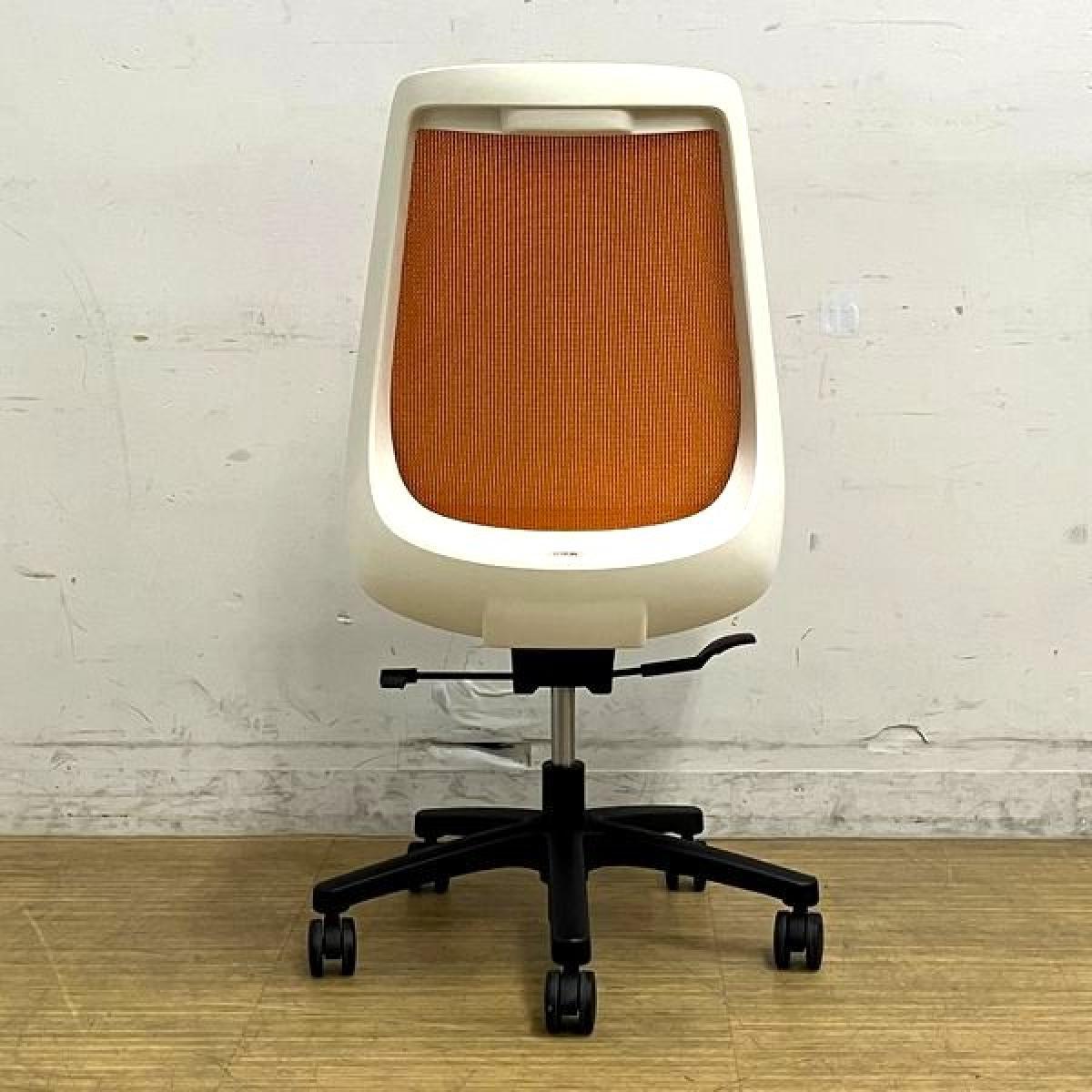 イトーキ ノナ プレーンメッシュ 肘無しチェア オレンジ×ホワイトフレーム コンパクトなサイズ感で女性におすすめ- 名古屋千種店