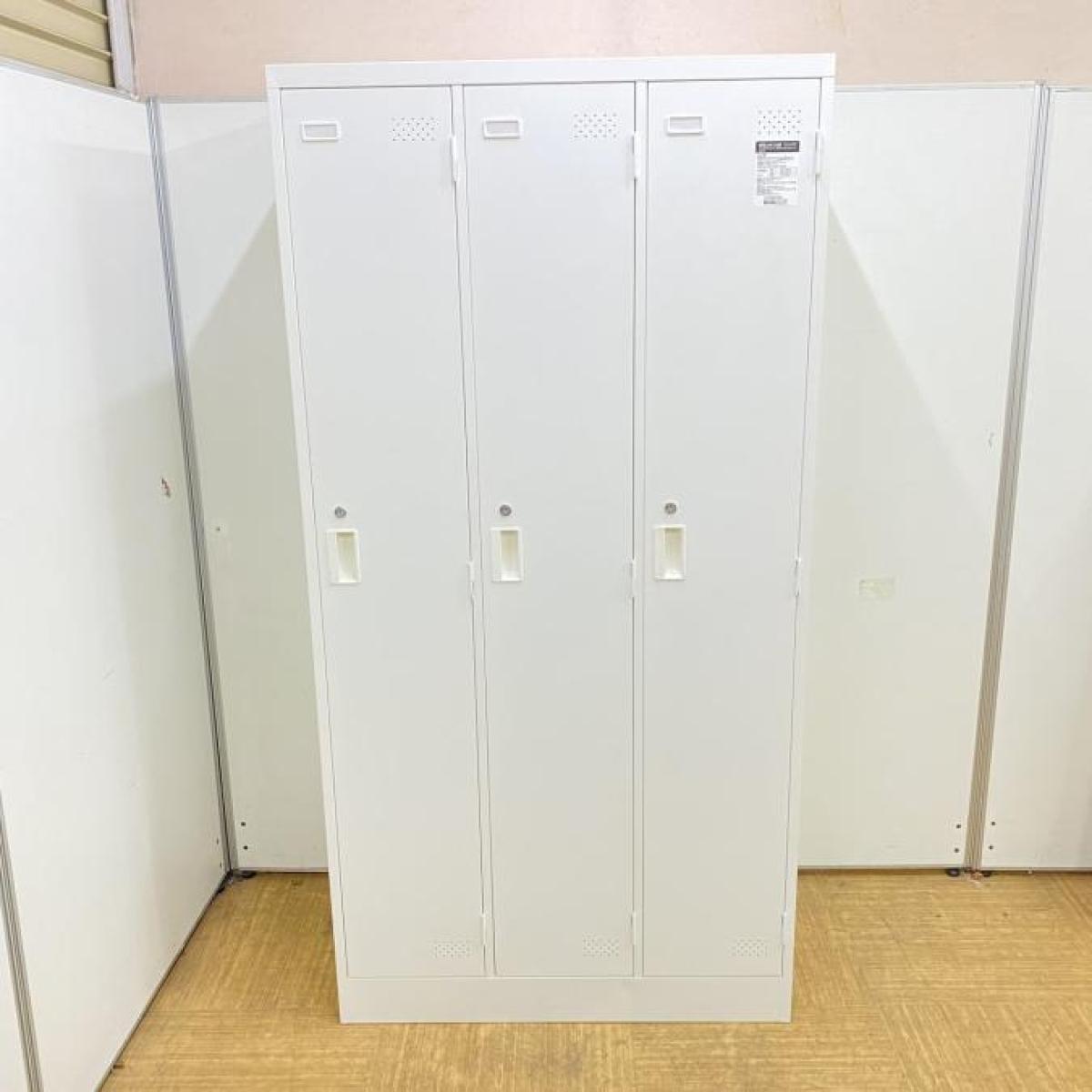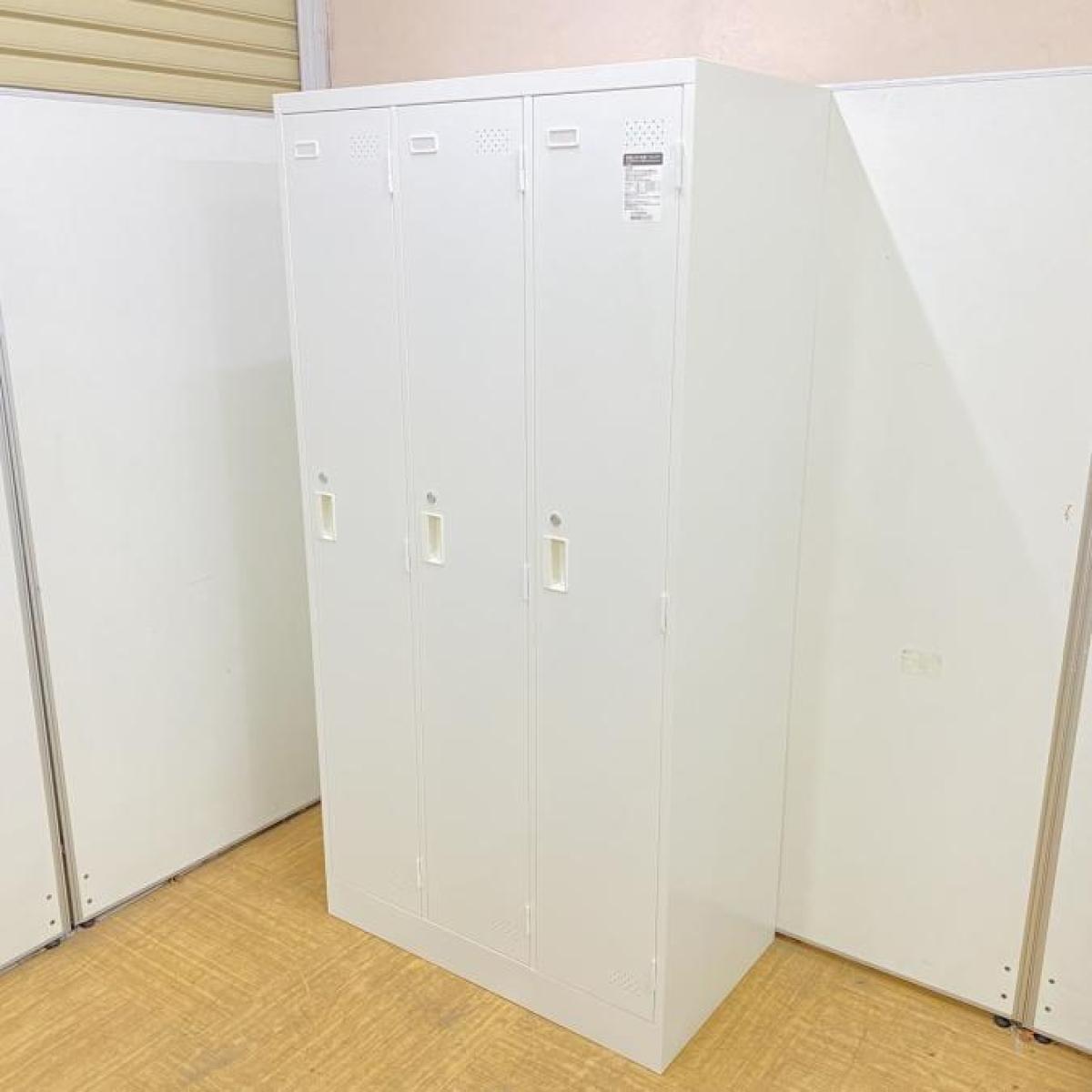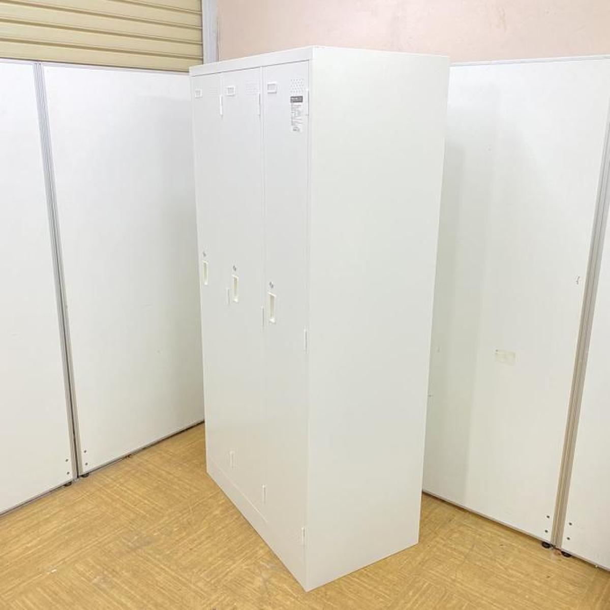 【1台入荷】3人用更衣ロッカー コクヨ LK 清潔感のあるホワイト 鍵付き シリンダー錠- 名古屋千種店