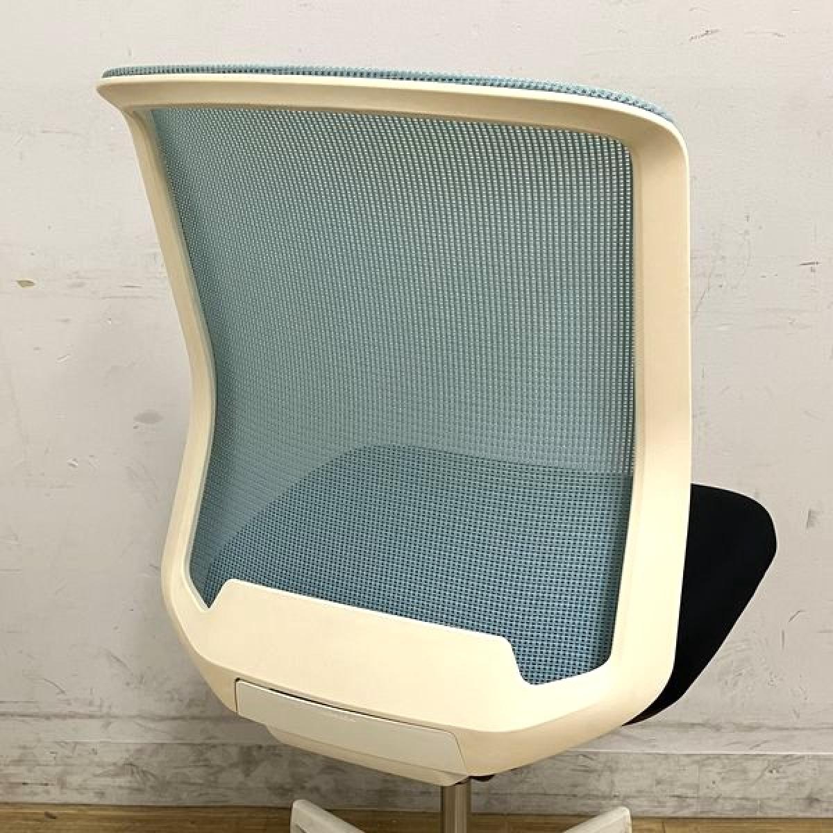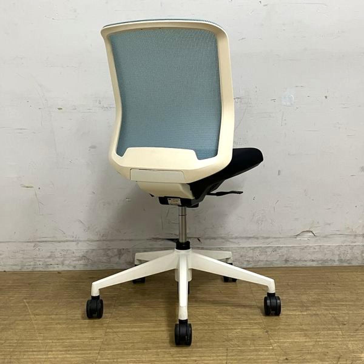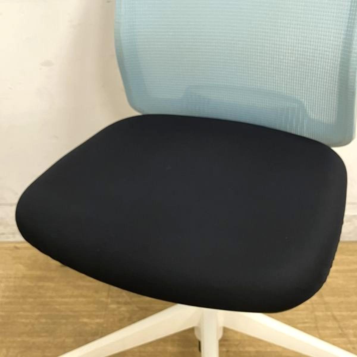 内田洋行 カリッサ 肘無しチェア 背メッシュ コンパクトなデザインがおすすめポイント 背:アクアブルー 座:ブラック フレーム:ホワイトサーキュラーバリューCO2削減量の算出について