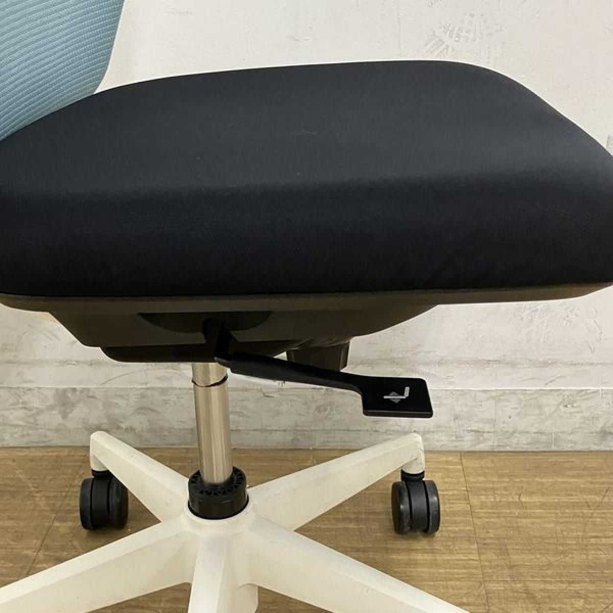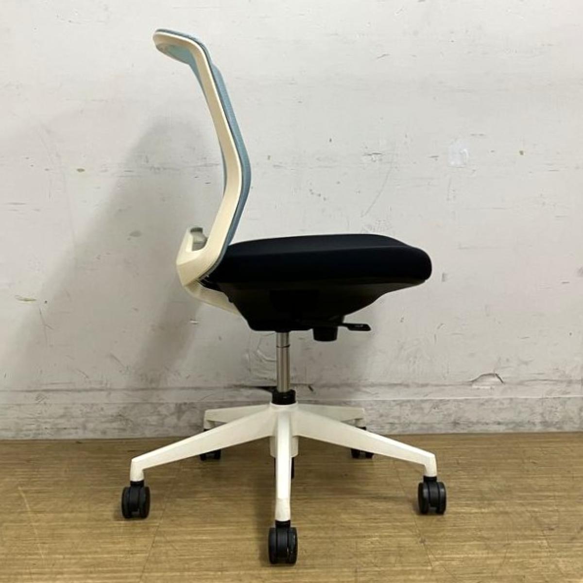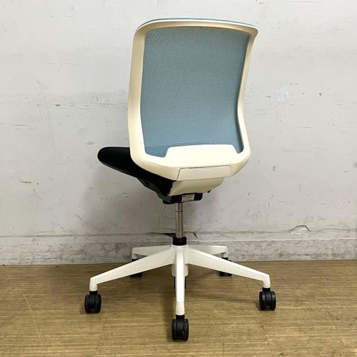 内田洋行 カリッサ 肘無しチェア 背メッシュ コンパクトなデザインがおすすめポイント 背:アクアブルー 座:ブラック フレーム:ホワイトサーキュラーバリューCO2削減量の算出について