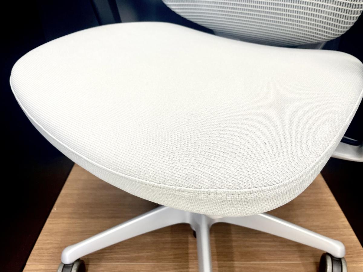 座面の前方は太ももを圧迫しないように柔らかく、後方は臀部を支えるために硬めのクッションを採用しています。