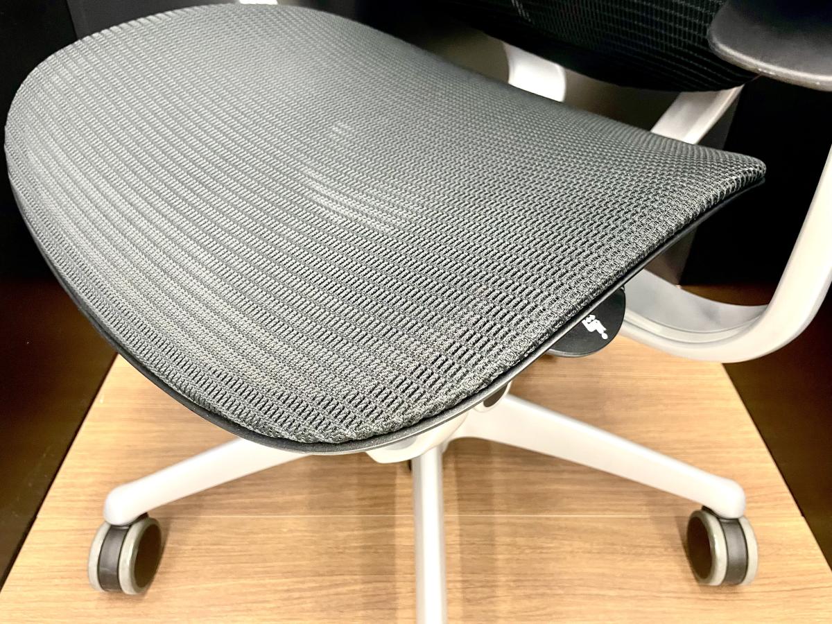 座面の前方は太ももを圧迫しないように柔らかく、後方は臀部を支えるために硬めのクッションを採用しています。