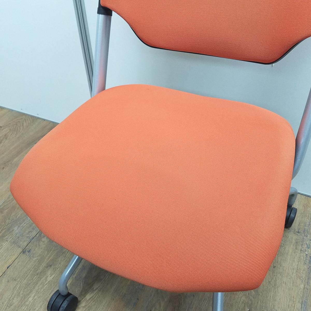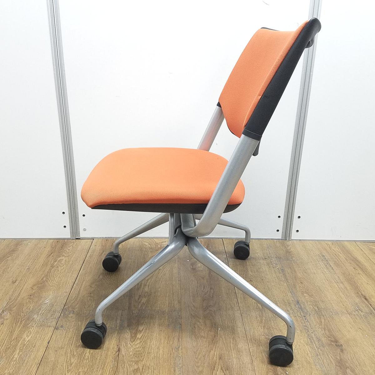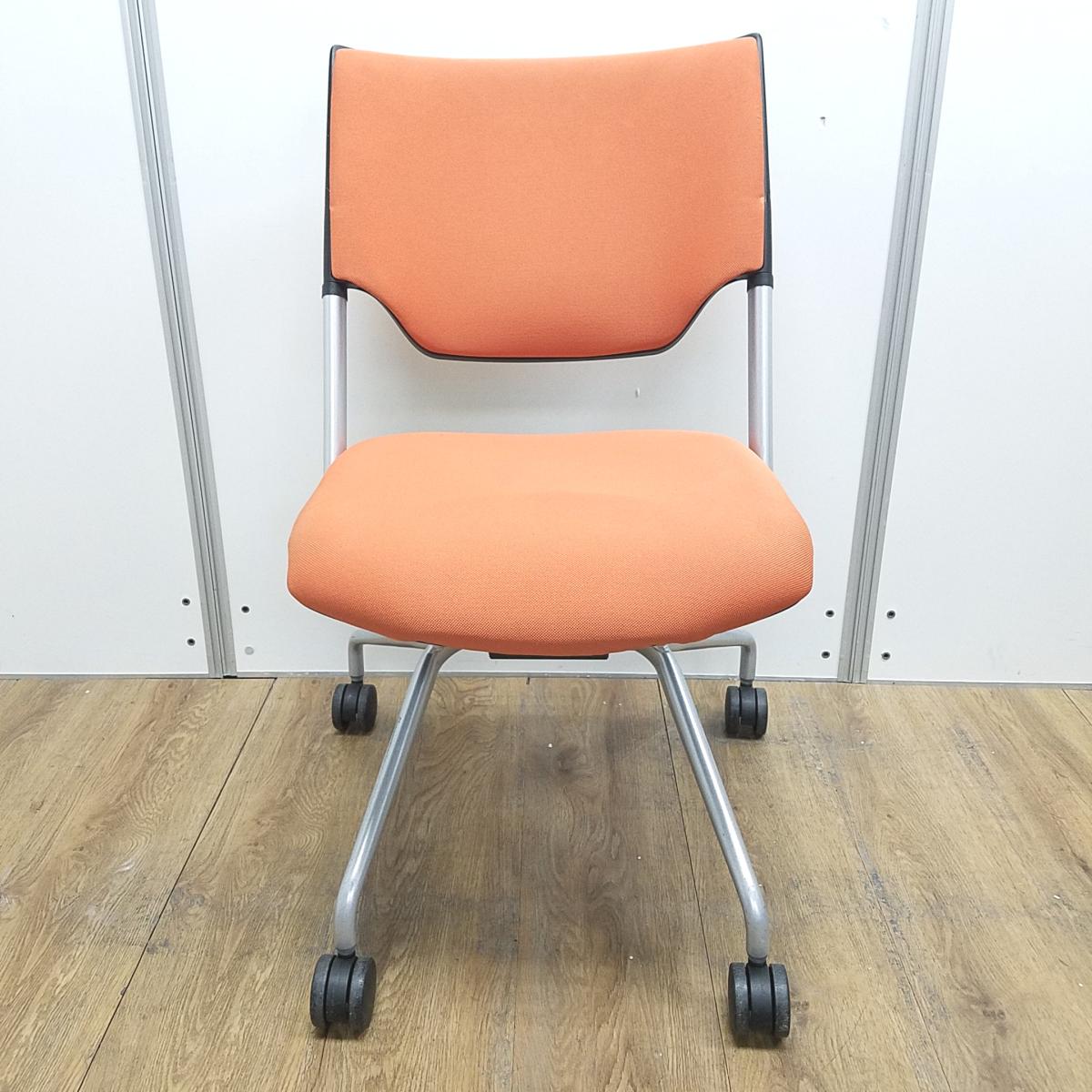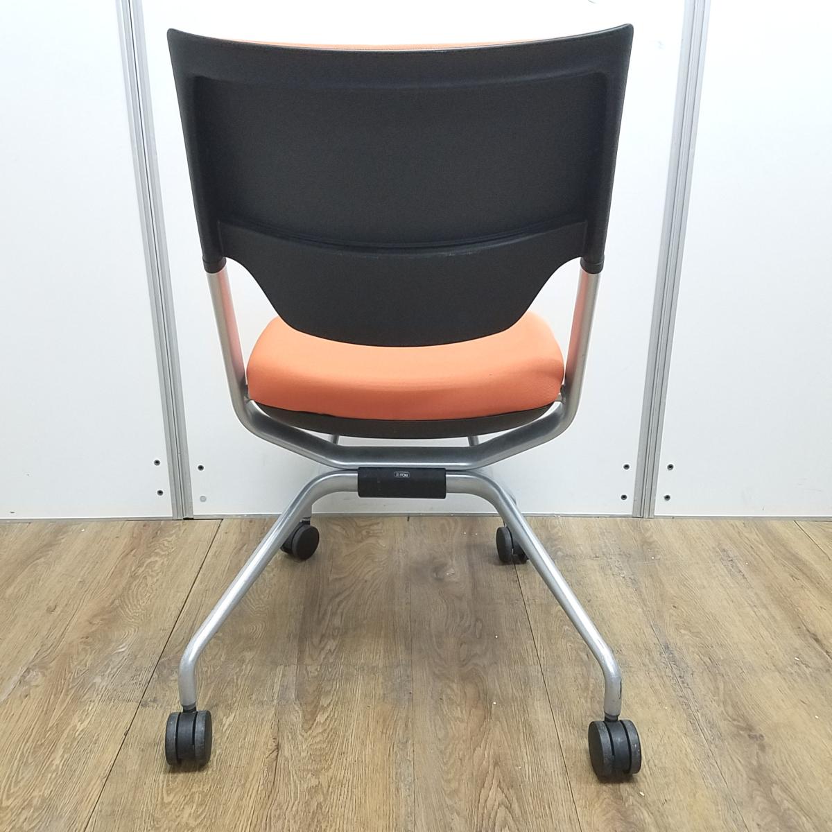 ★イトーキ製 レクシブ バーシモンオレンジ キャスター付 使用しない時には座面を跳ね上げ、水平方向に重ねて収納が可能! ネスティングチェア!!- 京都東寺店