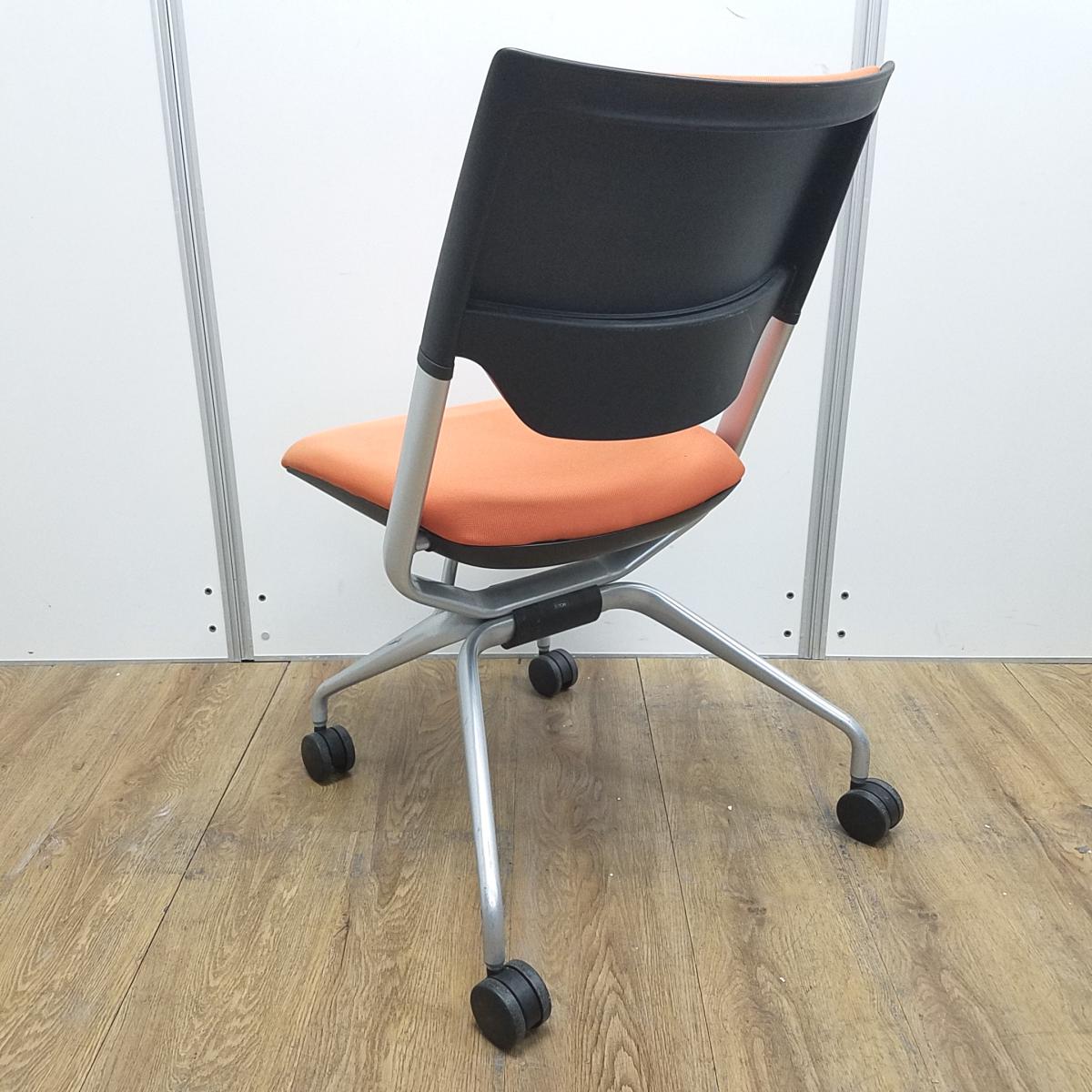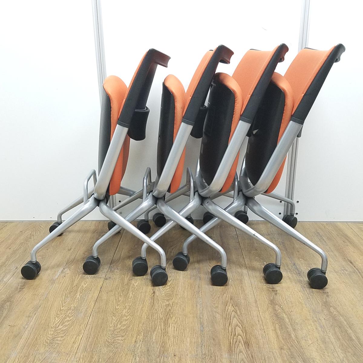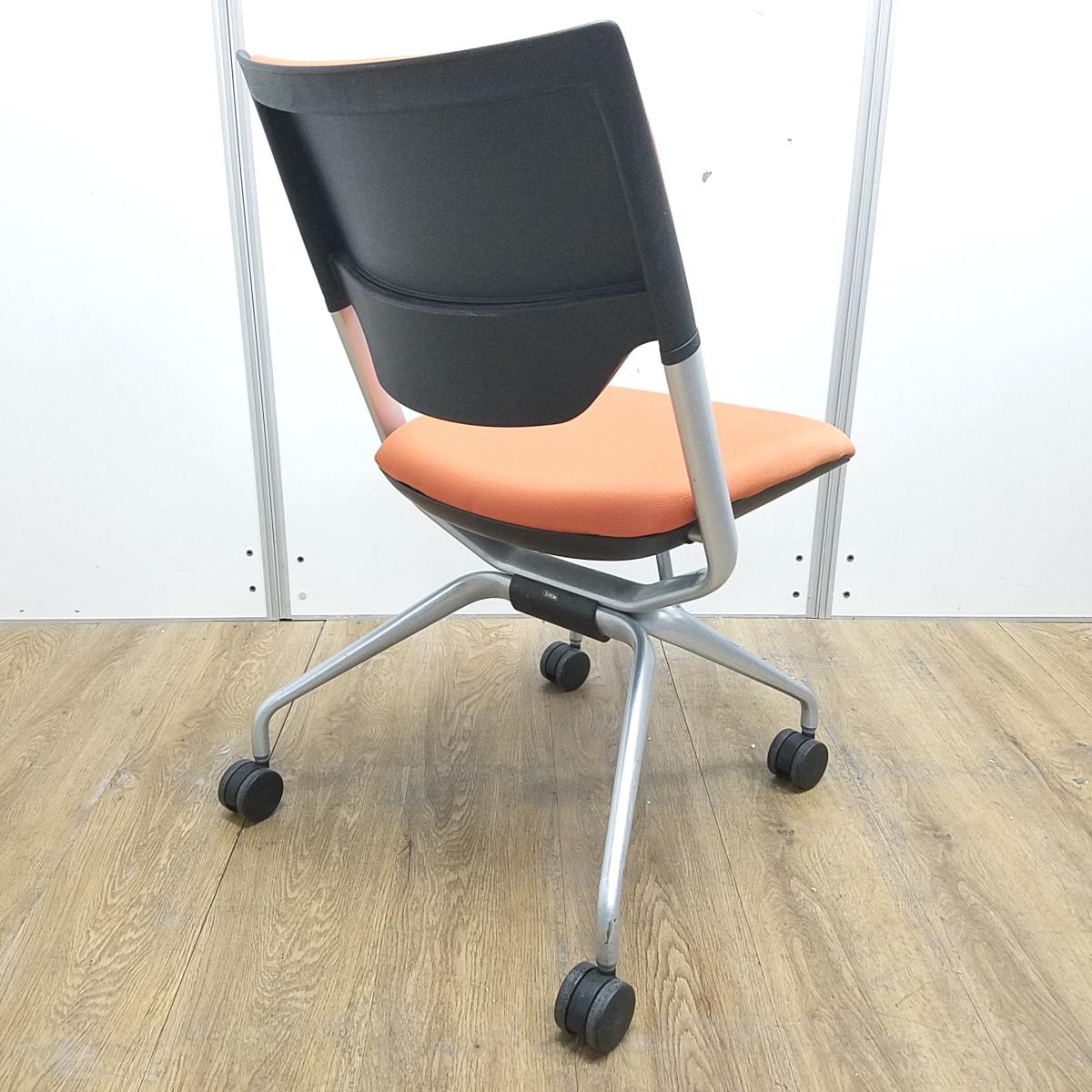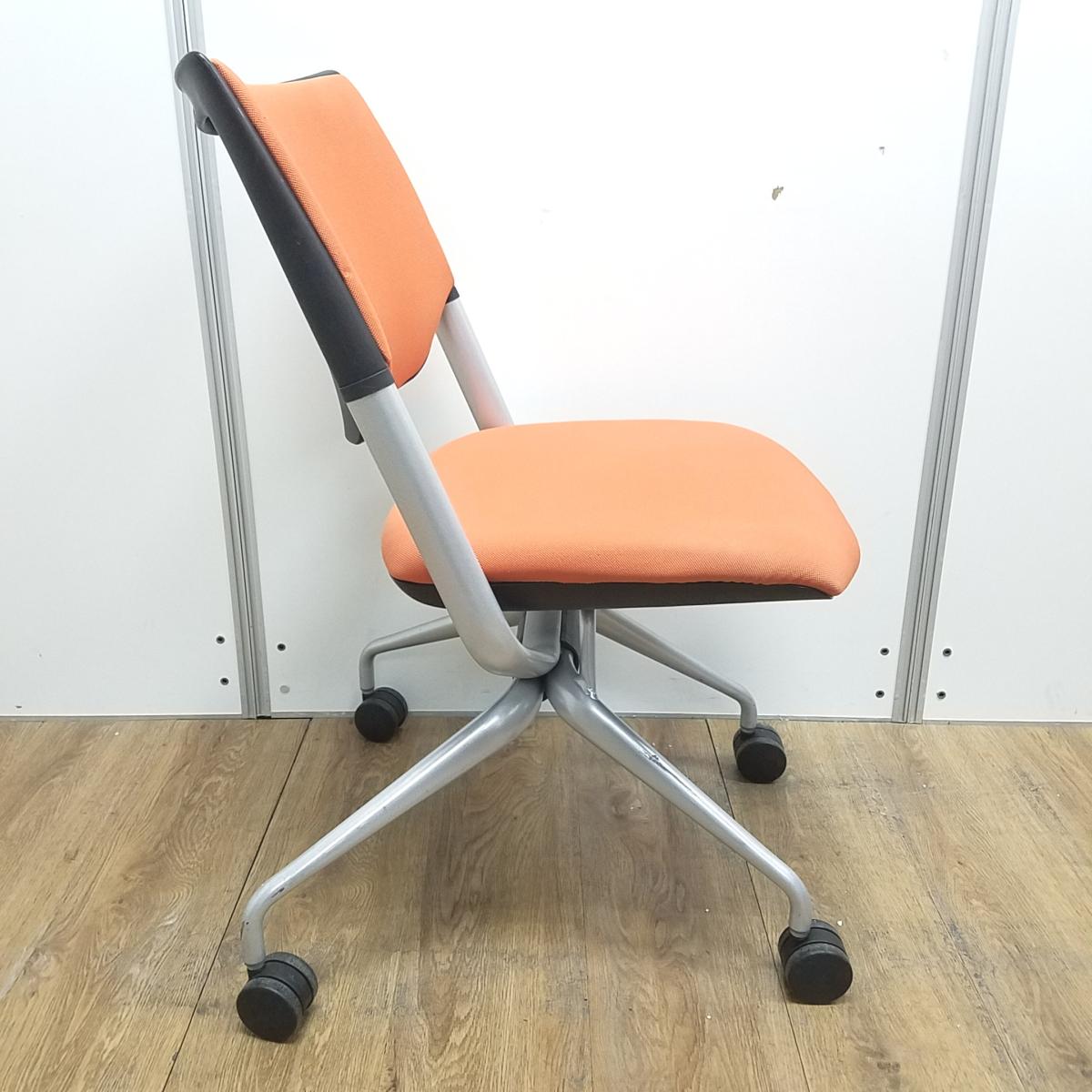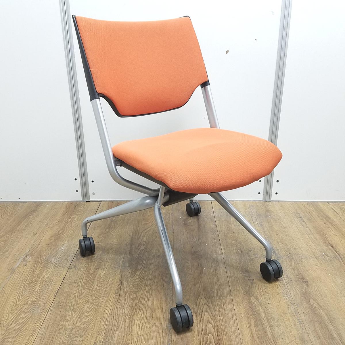 ★イトーキ製 レクシブ バーシモンオレンジ キャスター付 使用しない時には座面を跳ね上げ、水平方向に重ねて収納が可能! ネスティングチェア!!- 京都東寺店