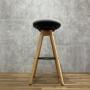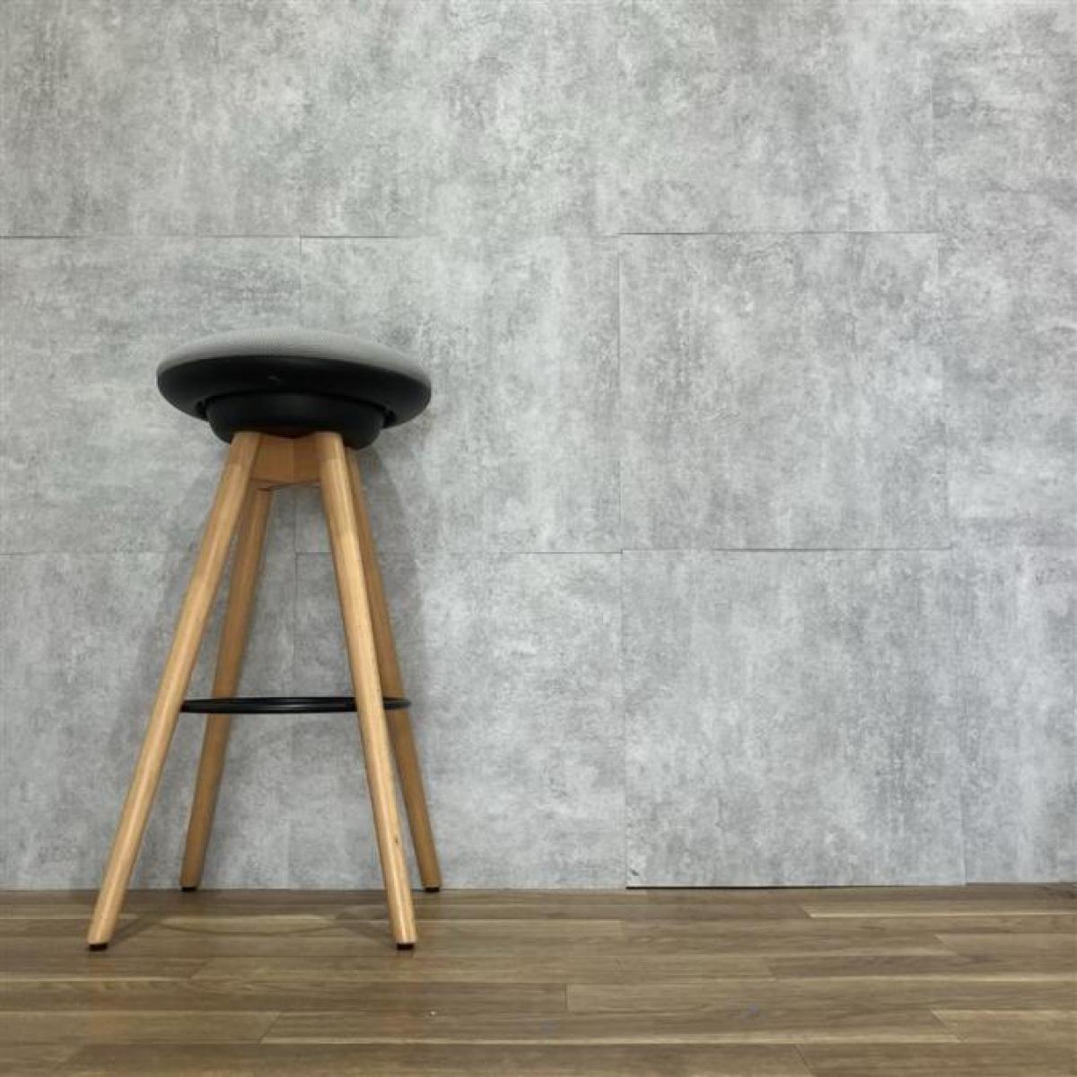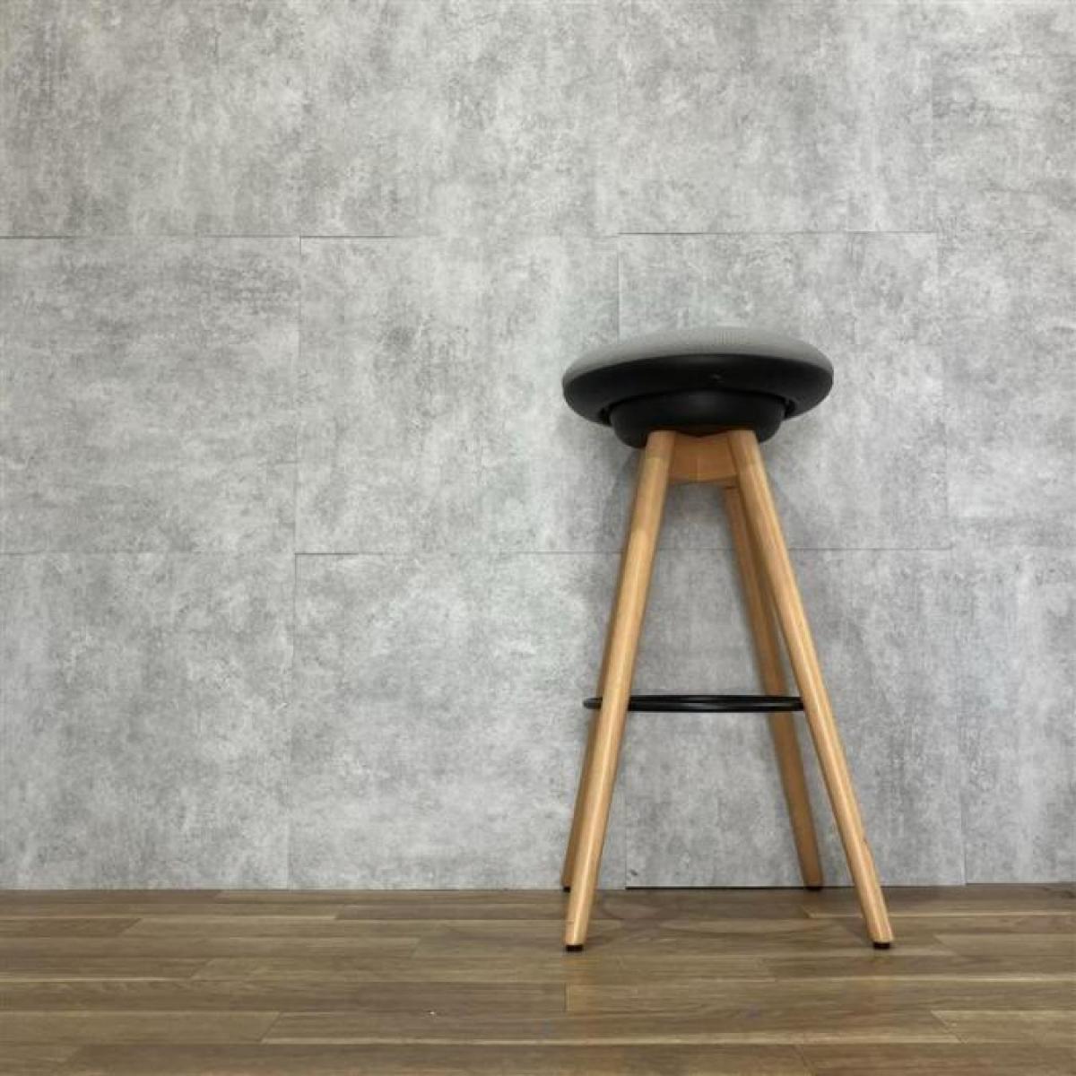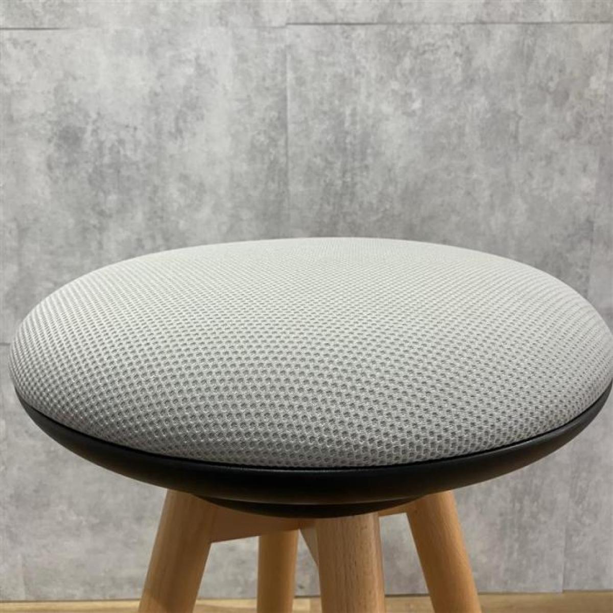 温かみのある木製脚と、クッション性の高い丸形座面の組み合わせが、