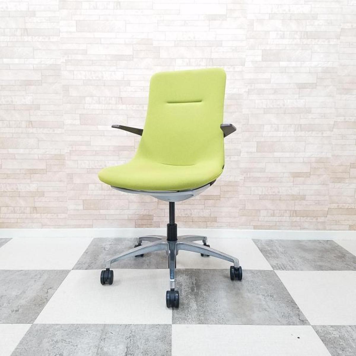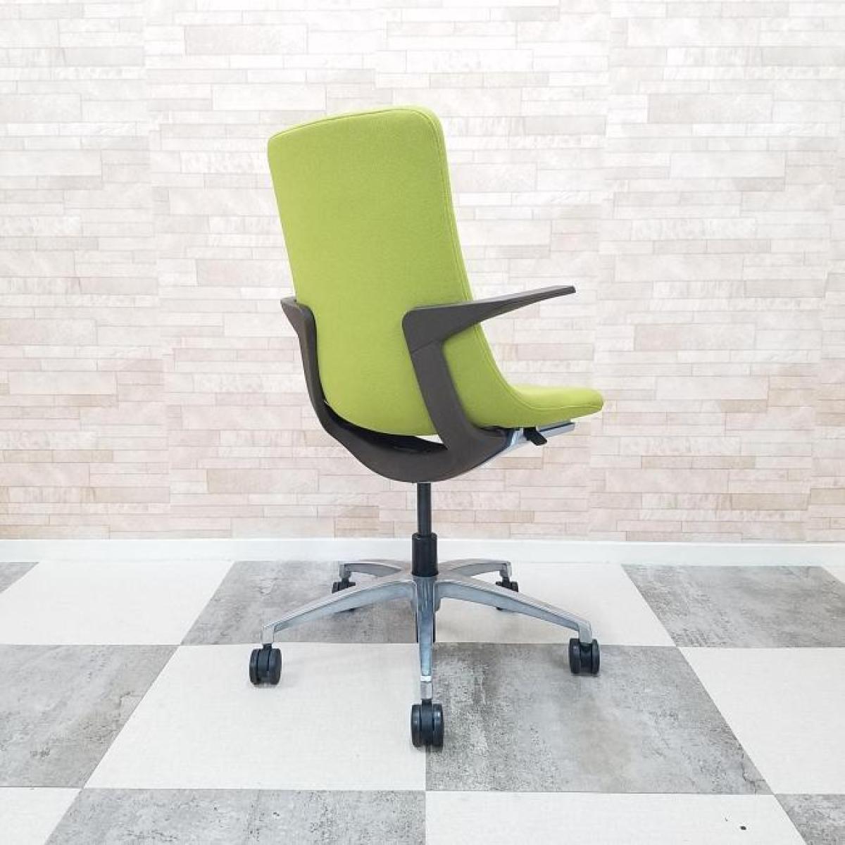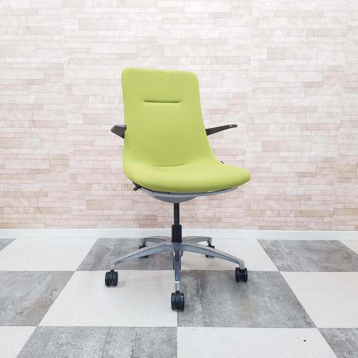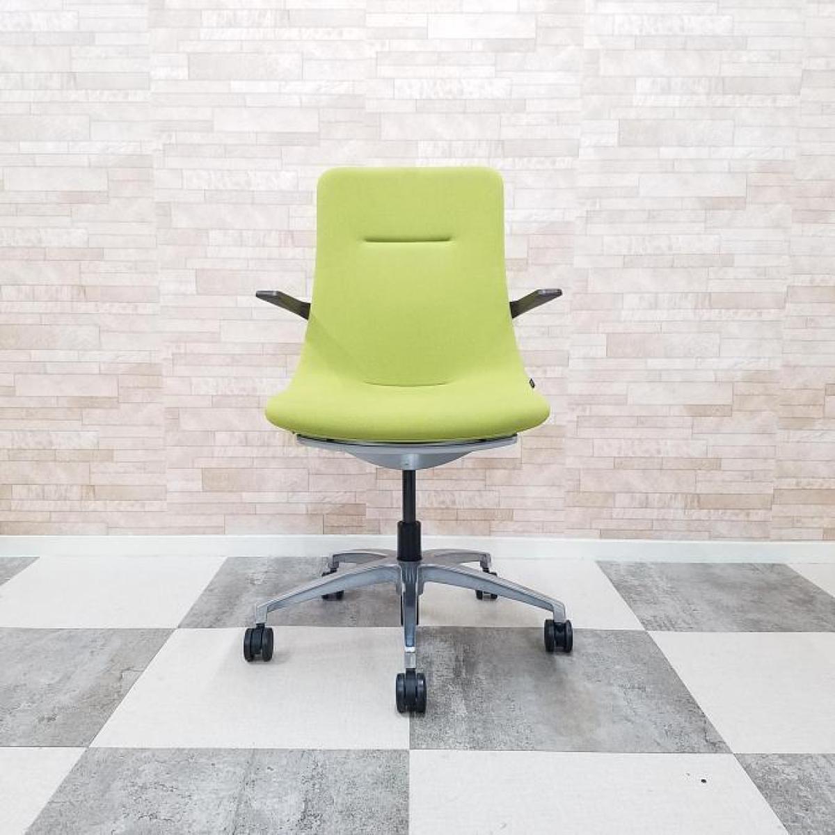 【背と座をなめらかに一体化させた独特のフォルム!】■イトーキ製 モーブチェア 肘付 モスグリーン アルミ脚 肘・背ブラケット:セピアブラウン ミーティングチェア【ITOKI MOVU】【ABW】- 川崎店
