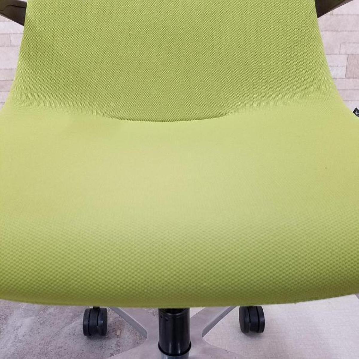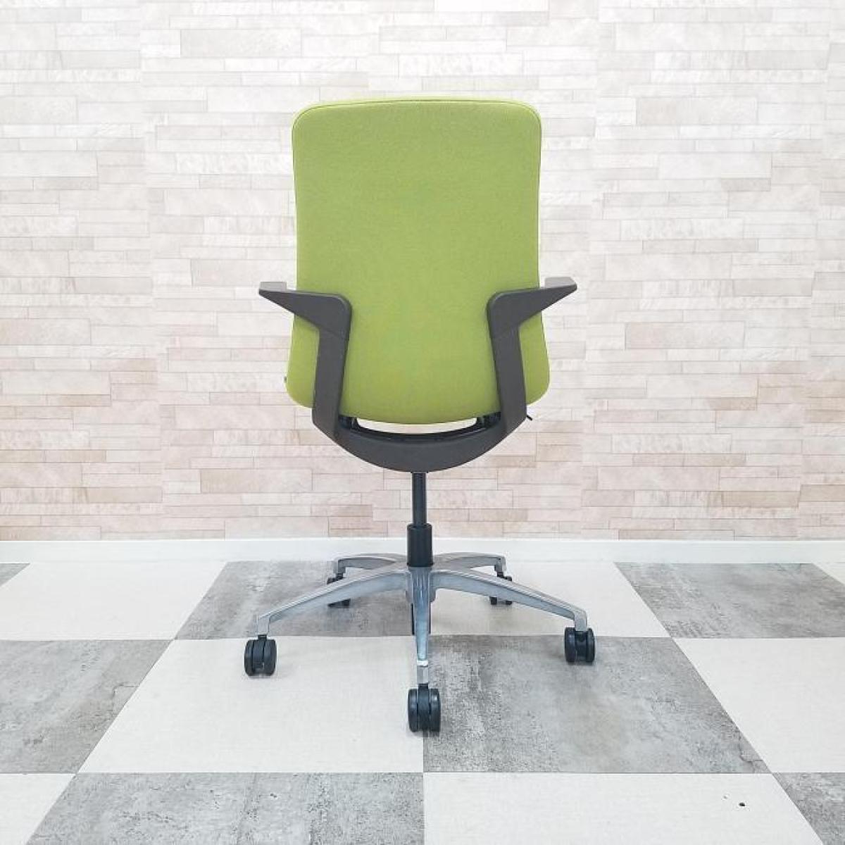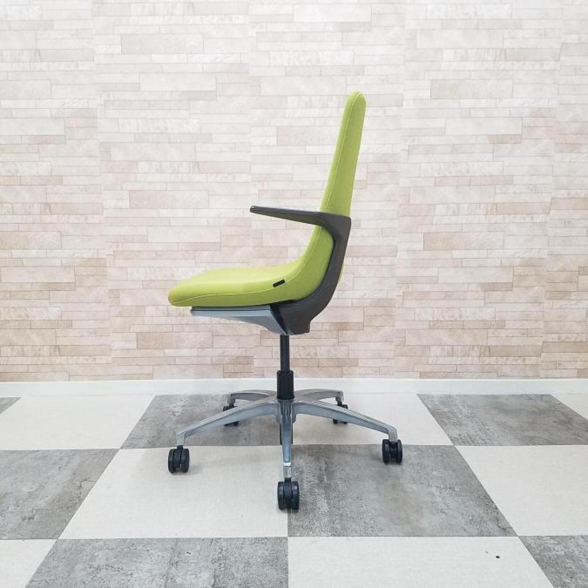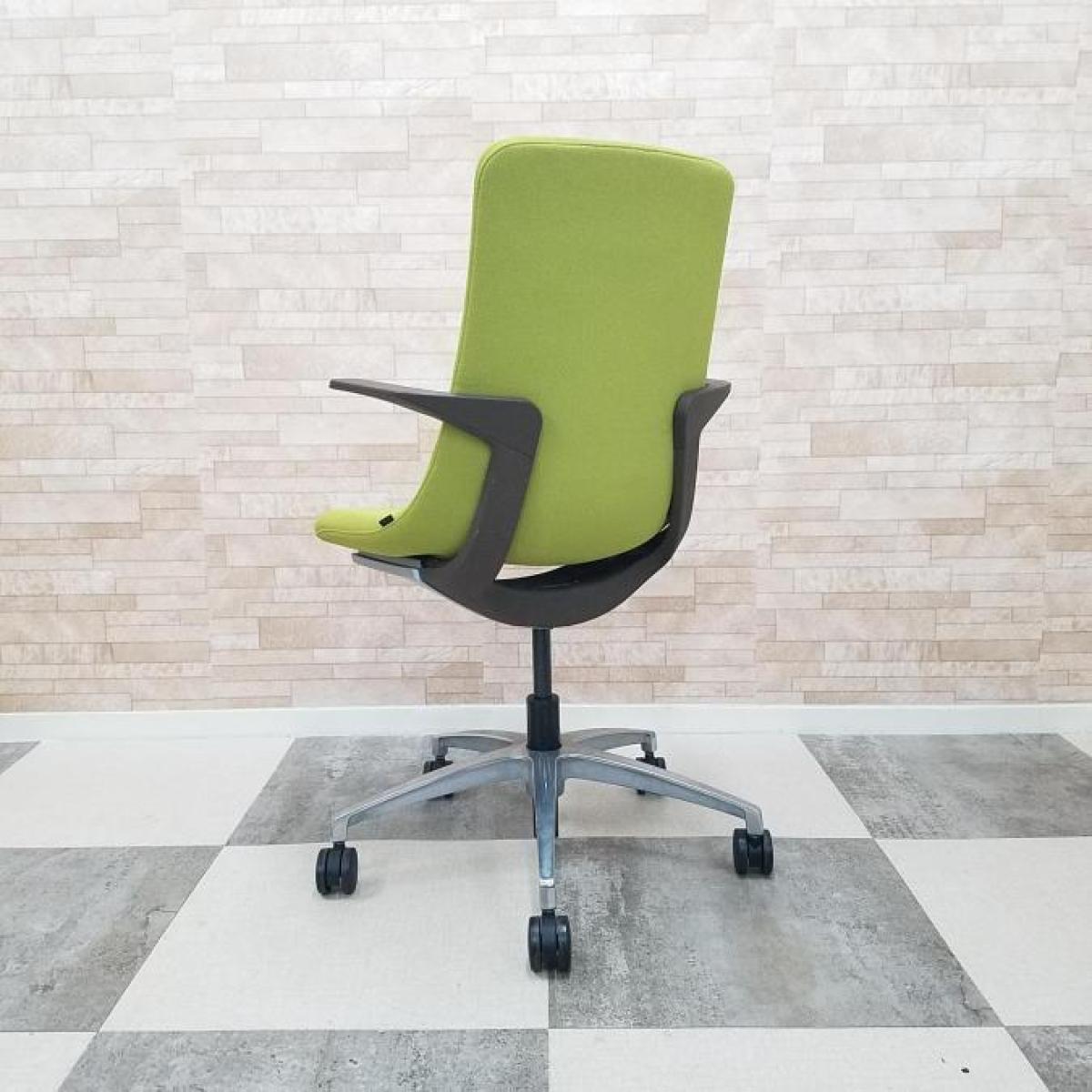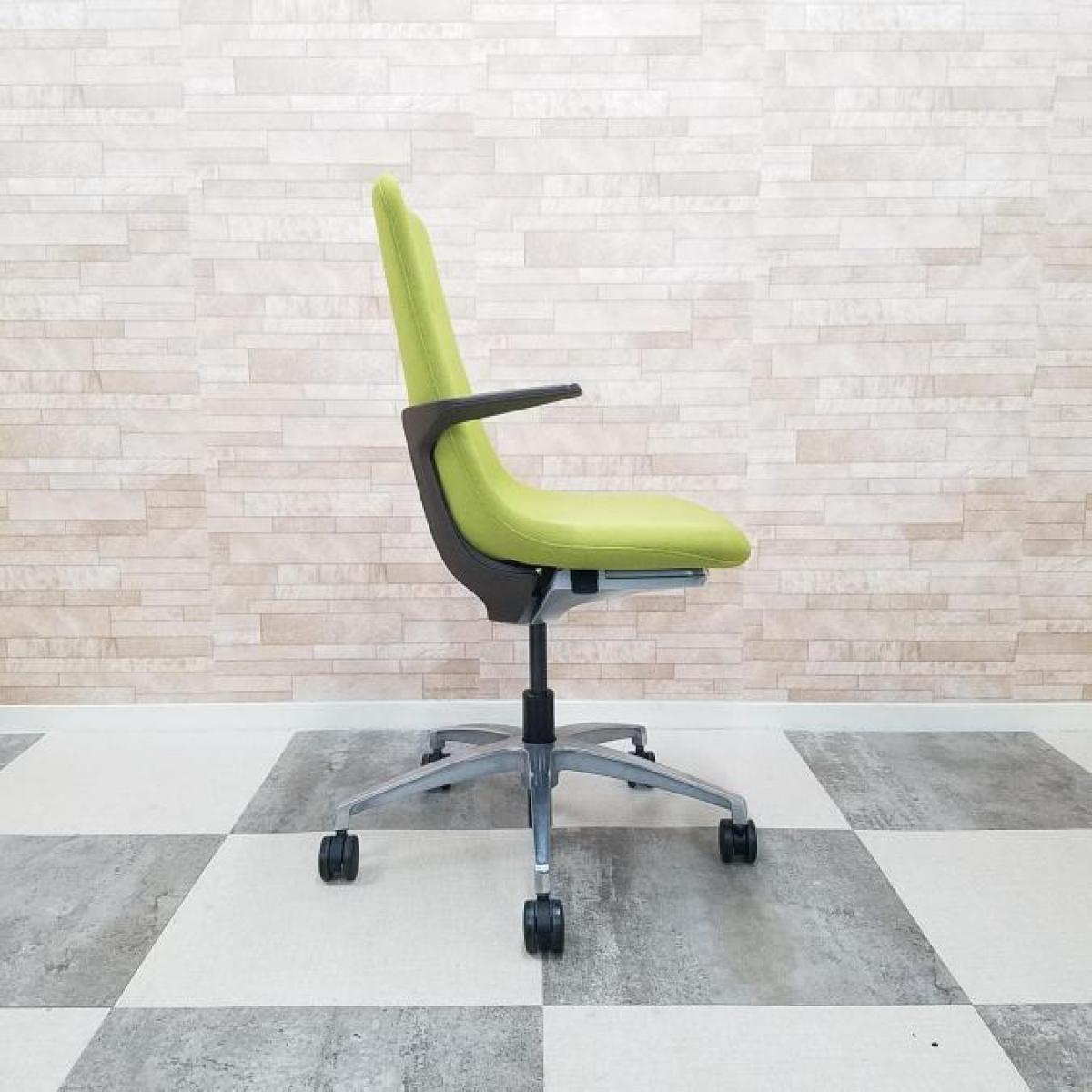 【背と座をなめらかに一体化させた独特のフォルム!】■イトーキ製 モーブチェア 肘付 モスグリーン アルミ脚 肘・背ブラケット:セピアブラウン ミーティングチェア【ITOKI MOVU】【ABW】- 川崎店