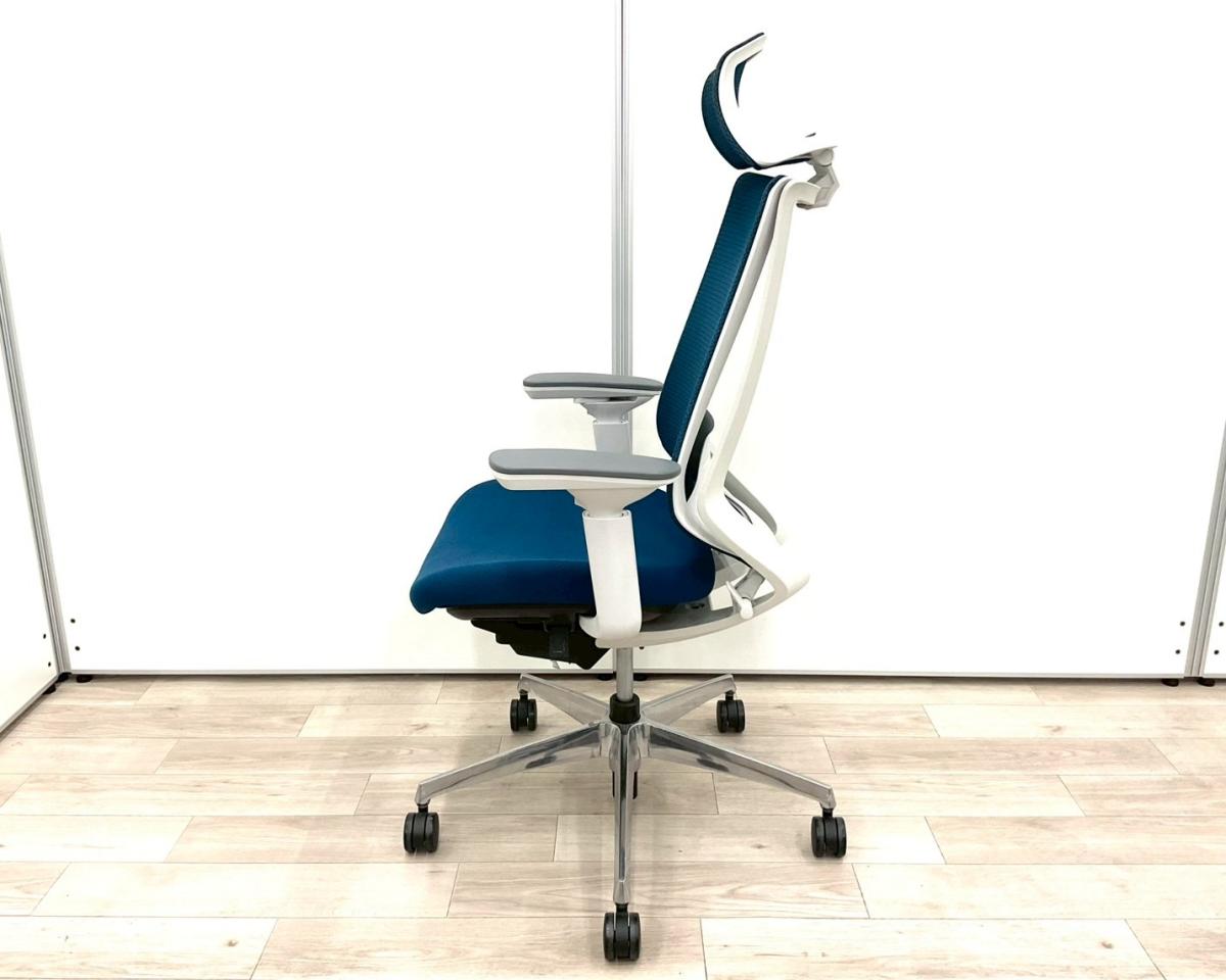 ■コクヨ(KOKUYO)製 ■デュオラ(Duora)チェア ■肘付き/可動肘 ■ハイバック ■背面メッシュ ■ヘッドレスト付き ■ランバーサポート付き ■ブルー×ホワイトシェル 【弊社使用欄:A01062318】サーキュラーバリューCO2削減量の算出について
