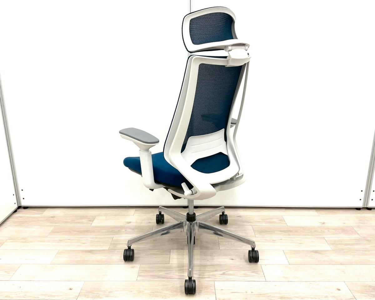 【二重フレーム構造がもたらすしなやかで美しい背もたれ機能!簡易操作で自分に合った姿勢をサポート!】■コクヨ(KOKUYO)製 デュオラ(Duora)チェア 肘付 ハイバック 背面メッシュ ■可動肘 ■プルシアンブルー×ホワイトシェル