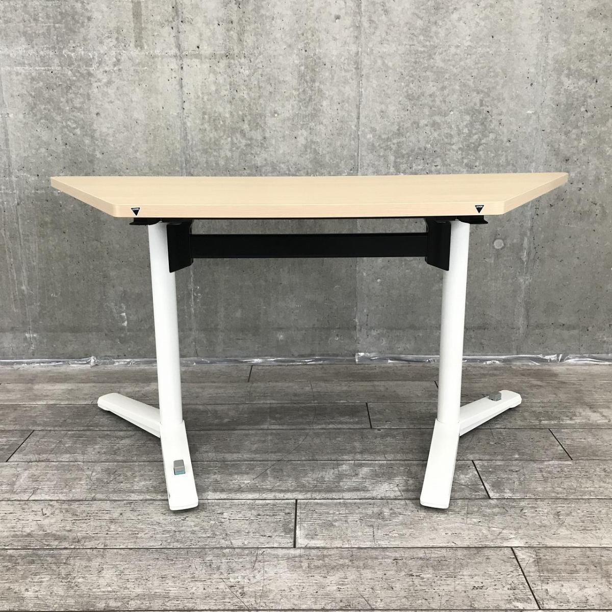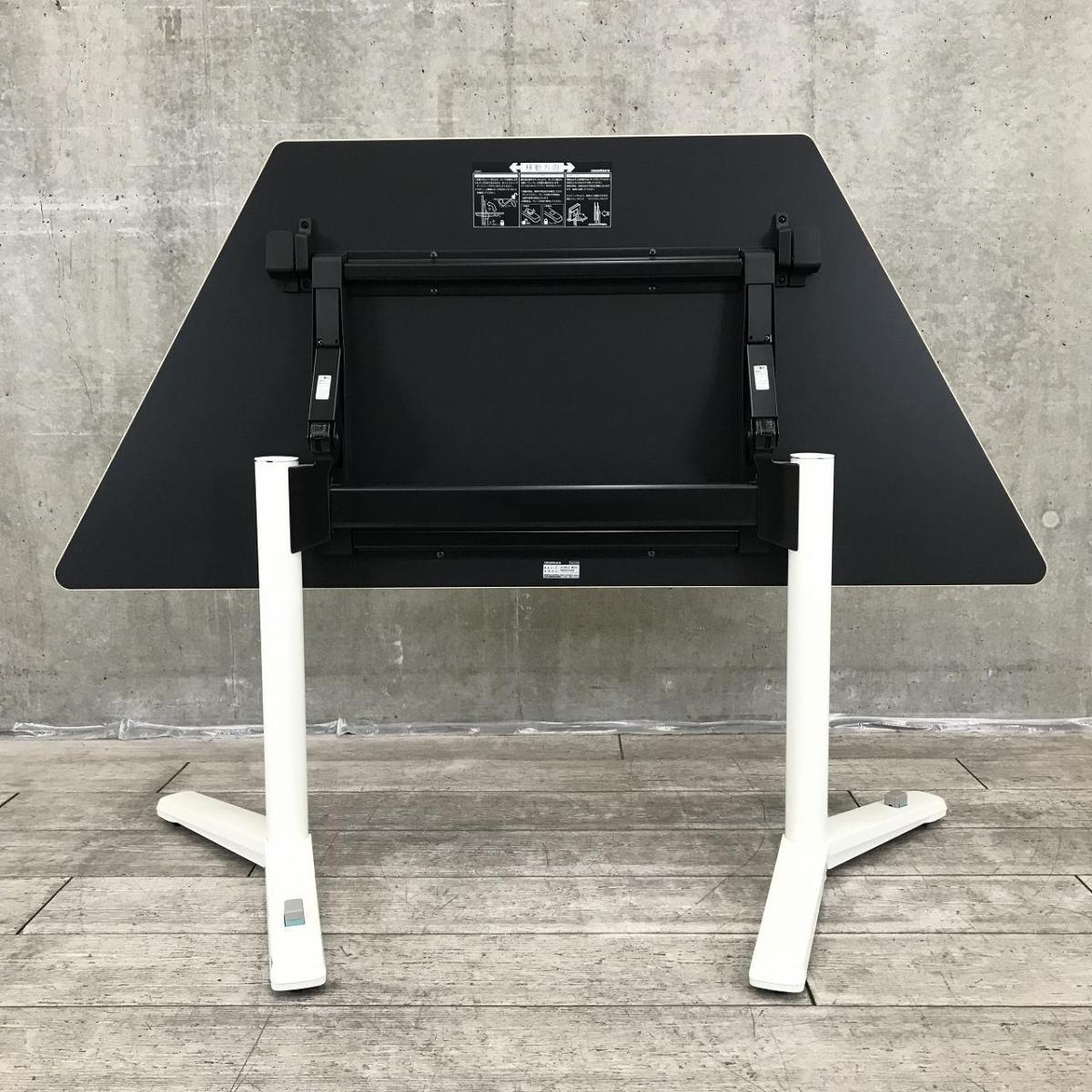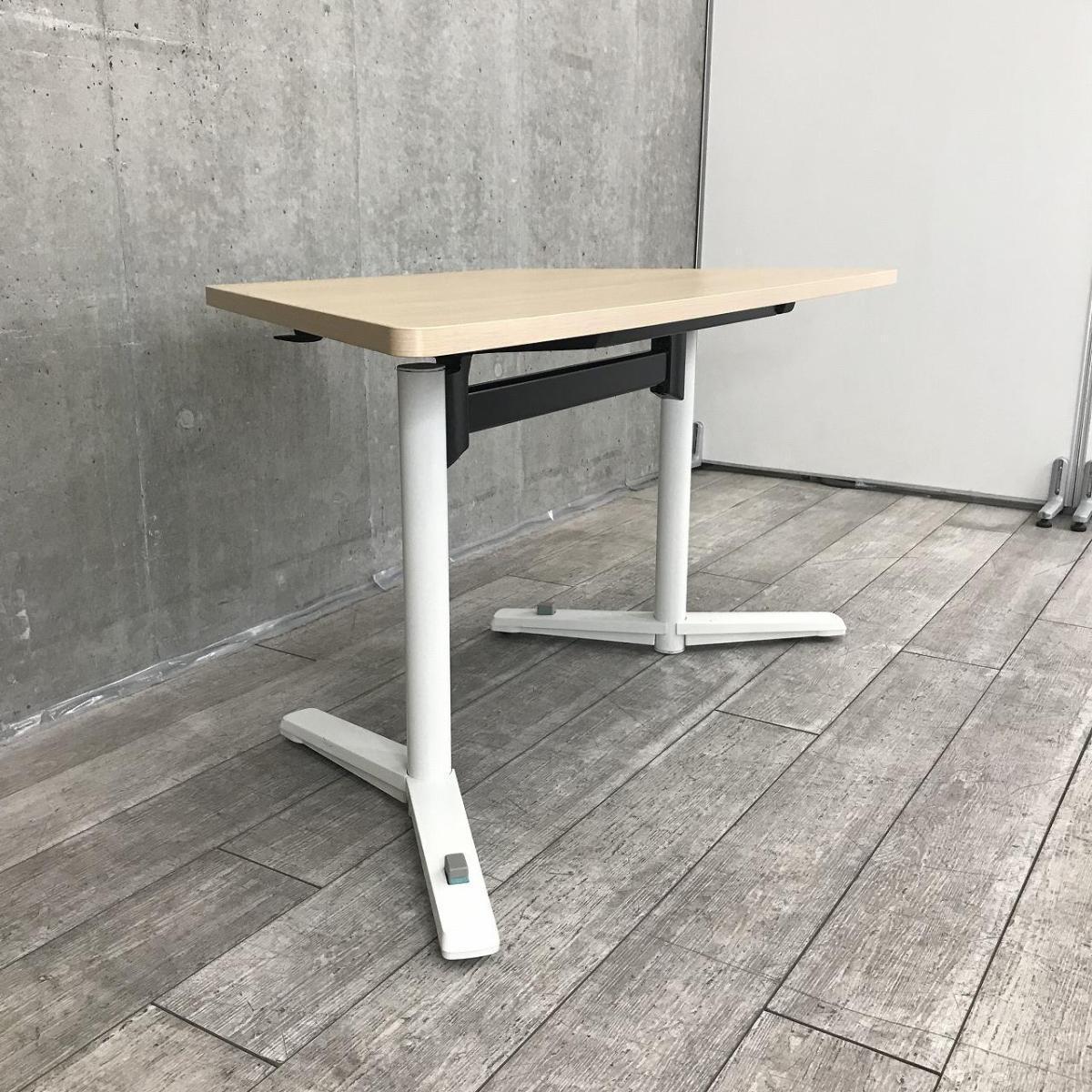 【発想により使用方法は無限大∞】■オカムラ ライブスシリーズ 木目調天板 フラップテーブル 台形 跳ね上げ式 ABW