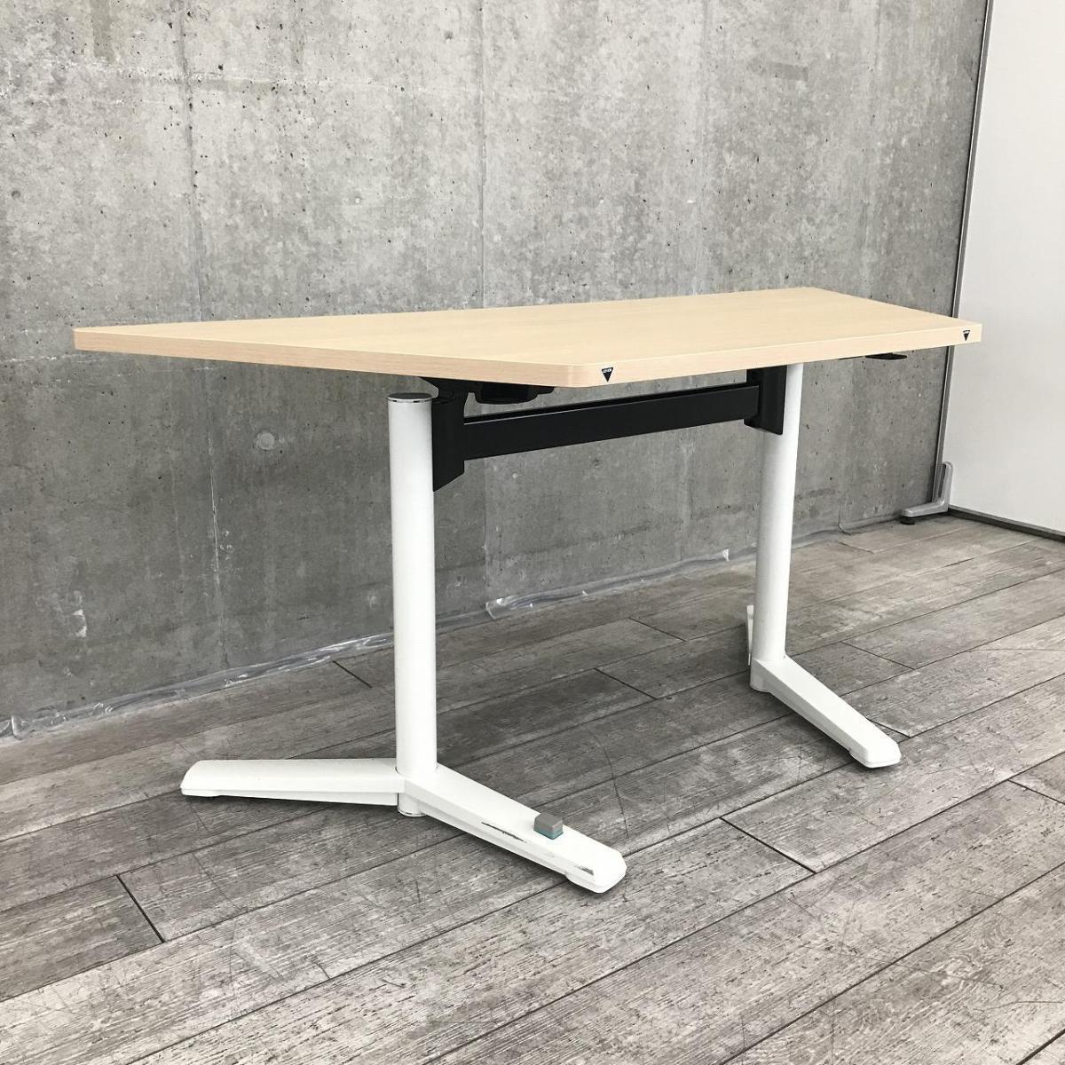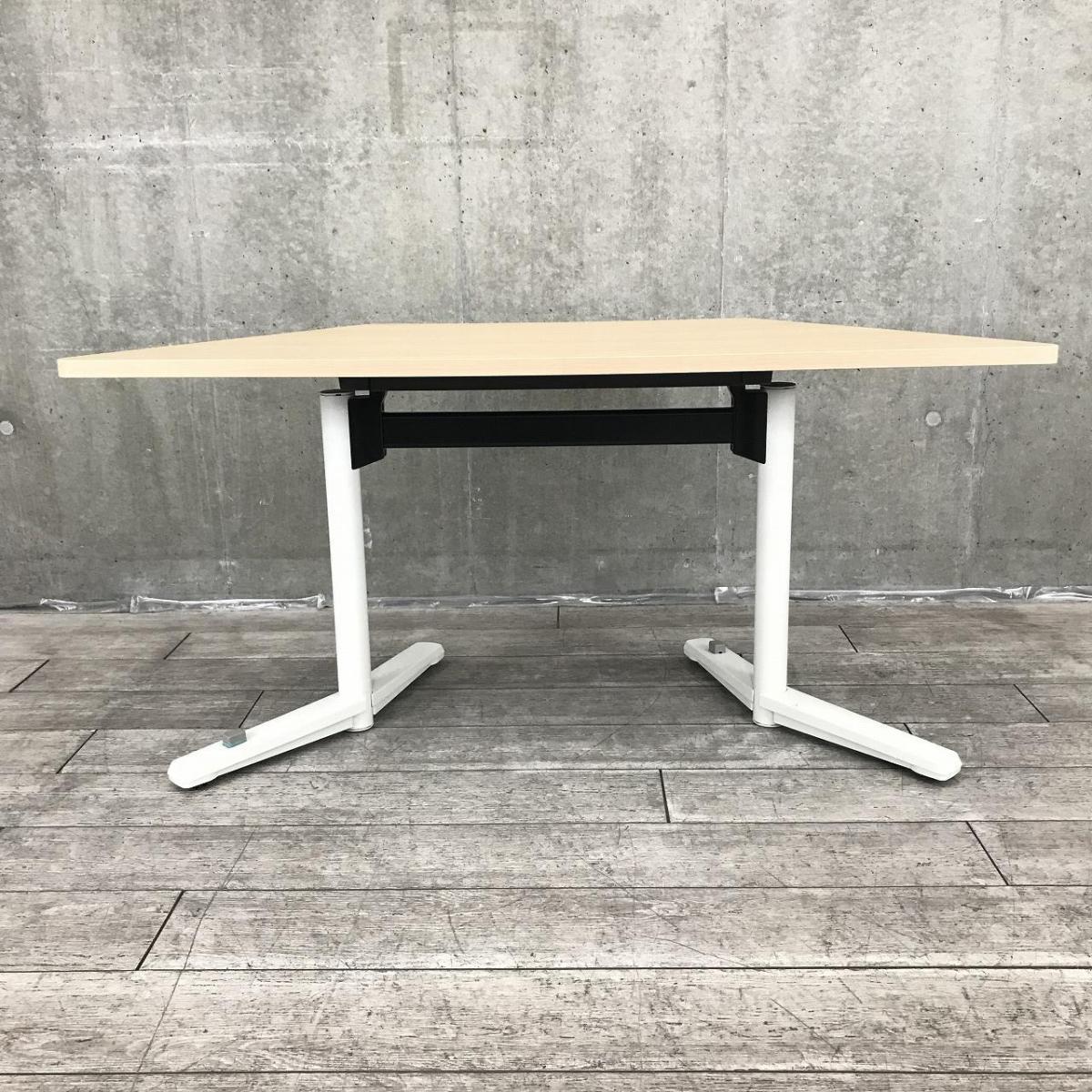 会議室/トレンド/ABW オカムラ(okamura)製 ライブス(Lives Meeting Table) フラップタイプテーブル 台形 ■天板:ネオウッドライト 脚:ネオホワイト- 千葉店