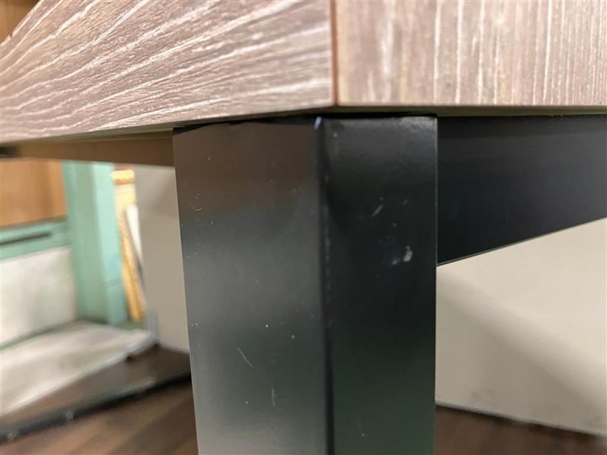 - 目立つ箇所複数あり深い傷・凹みが商品全体にある。(例、天板、幕板、棚板、サイド部分、脚部等にある。)