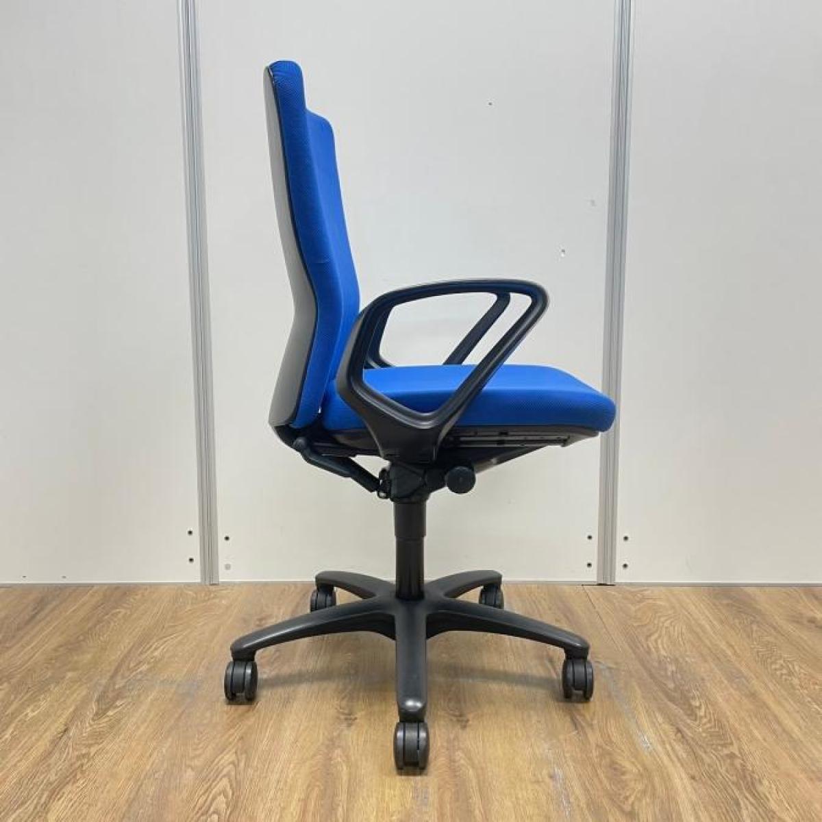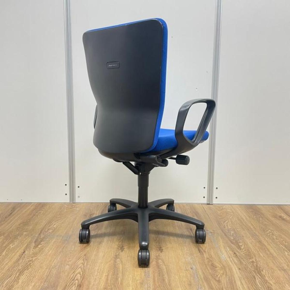 【長年愛されるロングセラーチェア!厚めのクッションで疲れにくい!】■オカムラ(okamura)製 カロッツァ(Carrozza)チェア 肘付 ハイバック ■サークル肘 ■ブルー×グレーシェル