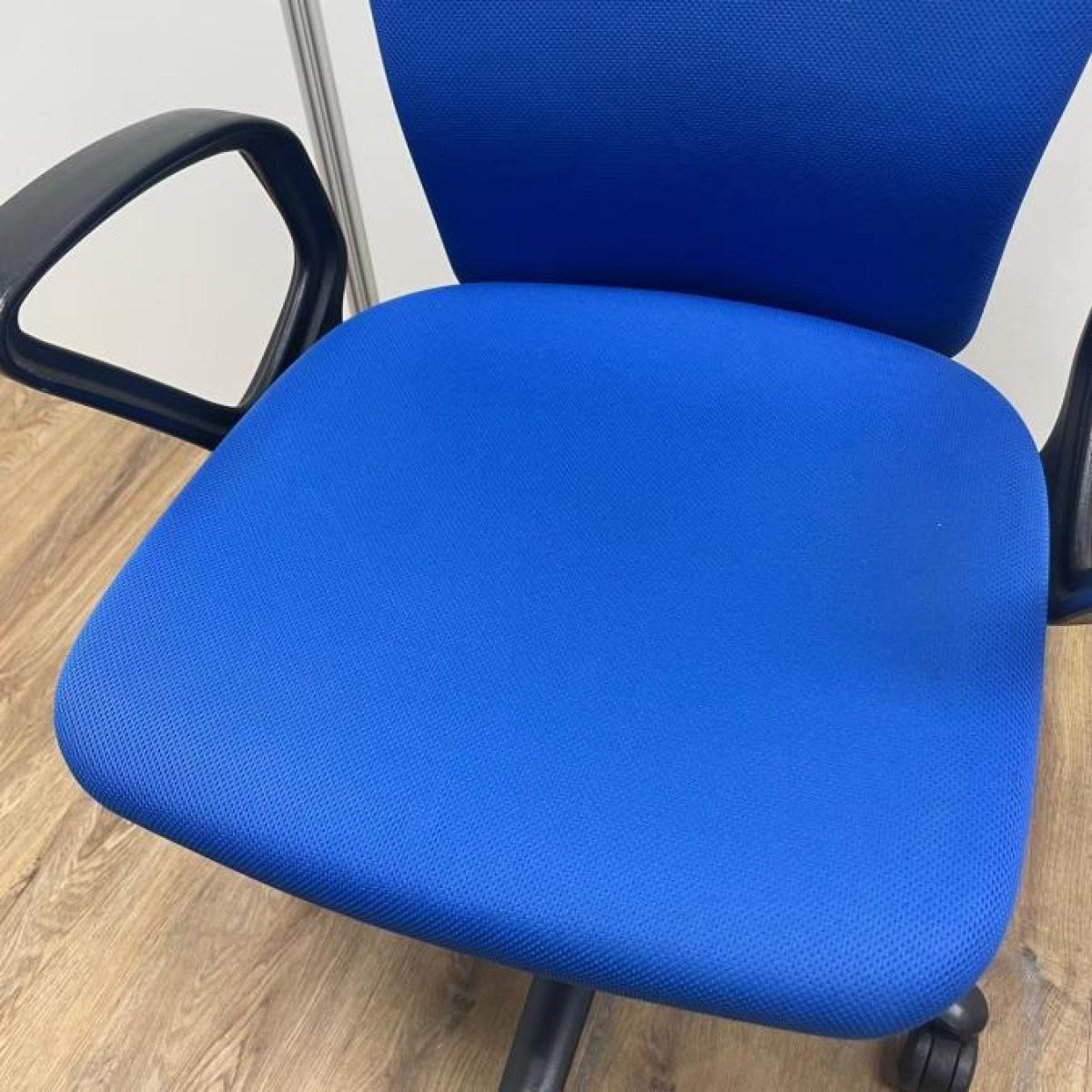 【長年愛されるロングセラーチェア!厚めのクッションで疲れにくい!】■オカムラ(okamura)製 カロッツァ(Carrozza)チェア 肘付 ハイバック ■サークル肘 ■ブルー×グレーシェル