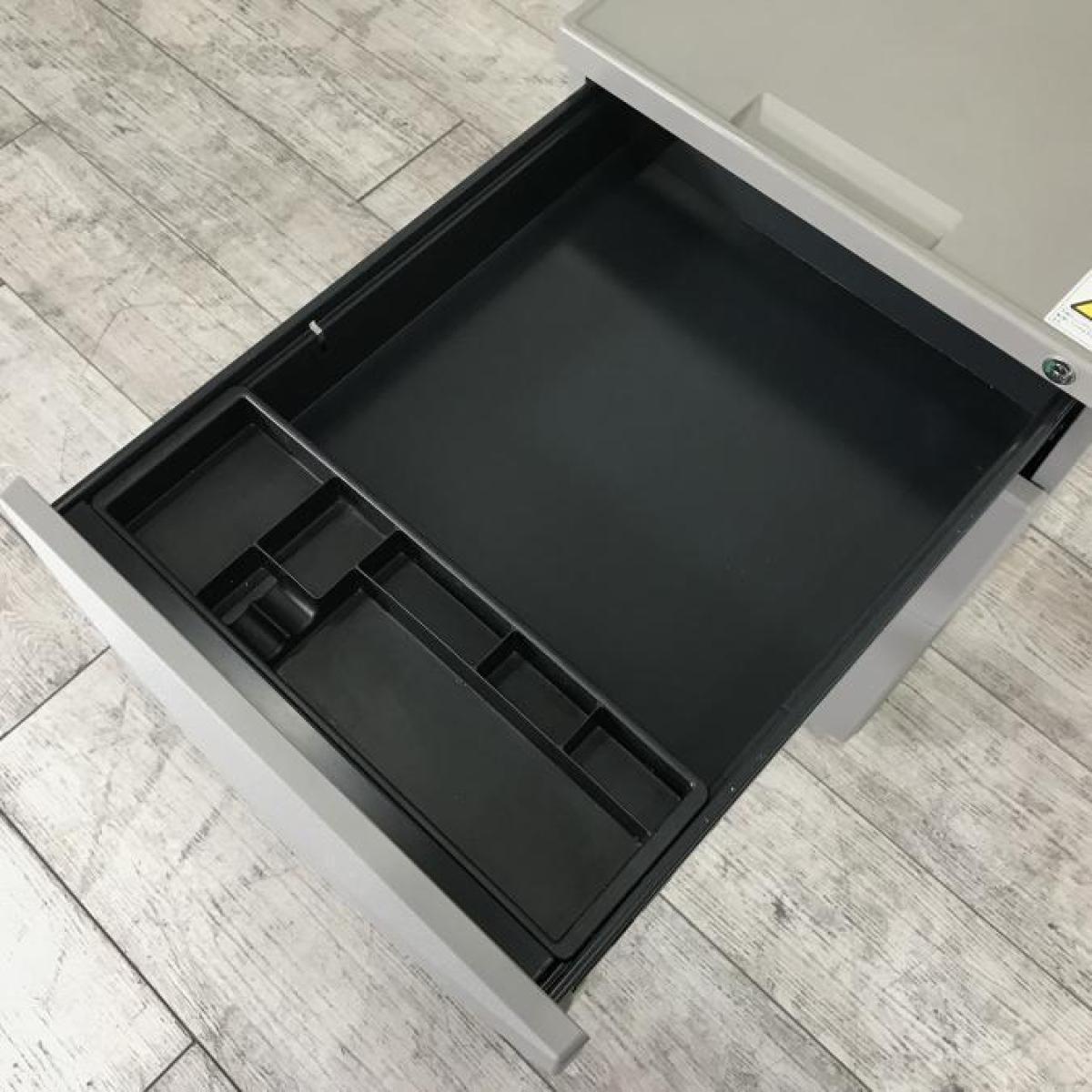 - 一部不具合ありその脇机・ワゴンの本来の効用を果たすための機能以外の一部が使用不可な状態。(例、引出が開閉しづらい、 キャスターロック機能使用不可、ラッチ不良 等がある。)