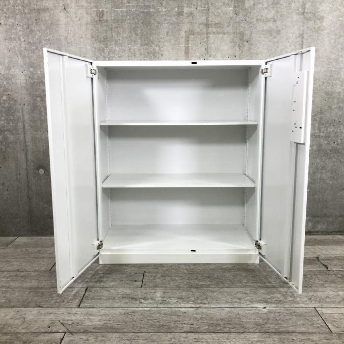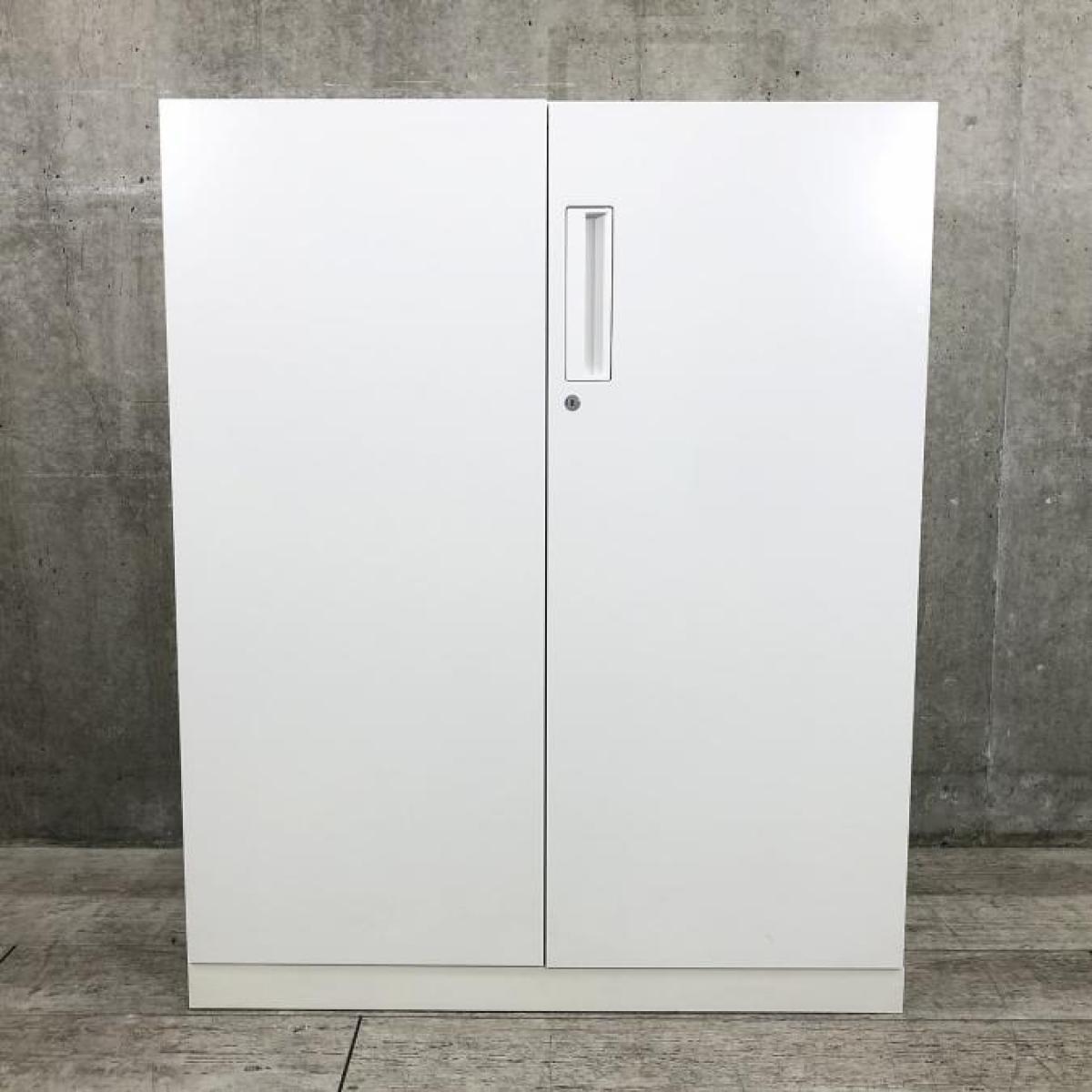 【収納物がひとめで分かる両開き戸タイプ!】■コクヨ(KOKUYO)製 エディア(EDIA)シリーズ 両開き書庫 ローキャビネット H1130㎜ ■天板・ベース付 ■シリンダー錠 ■ホワイト【2602】弊社使用欄【A01060970】