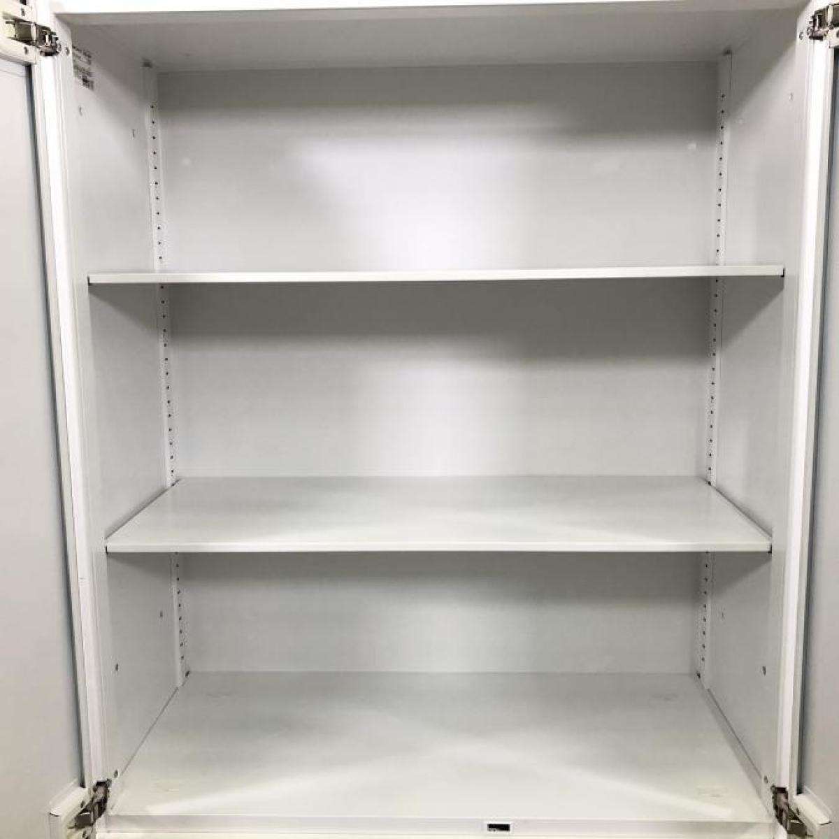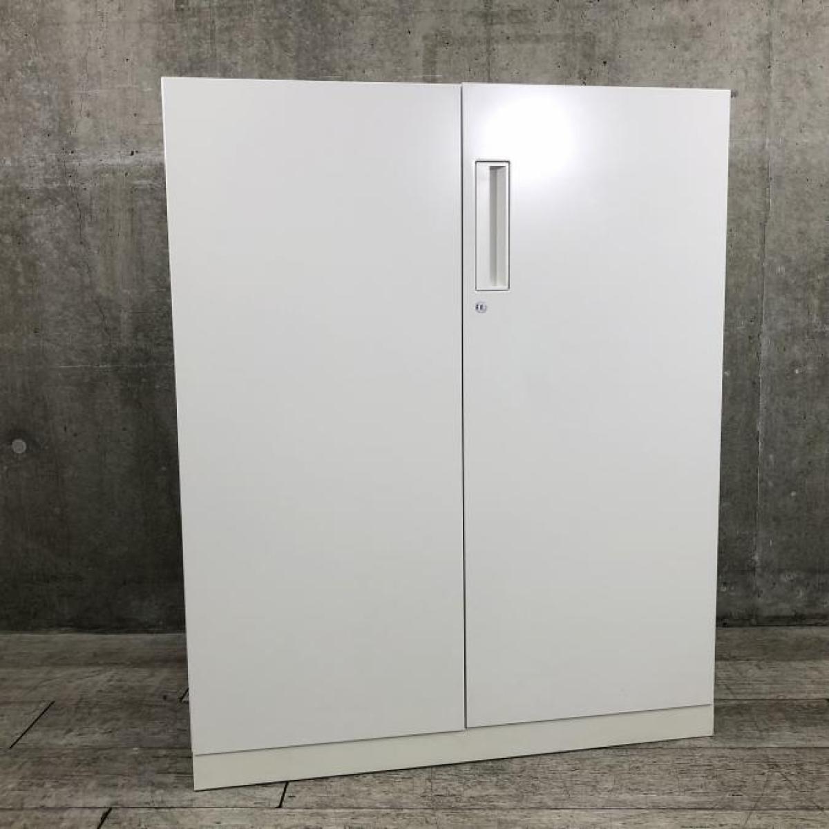 【収納物がひとめで分かる両開き戸タイプ!】■コクヨ(KOKUYO)製 エディア(EDIA)シリーズ 両開き書庫 ローキャビネット H1130㎜ ■天板・ベース付 ■シリンダー錠 ■ホワイト【2602】弊社使用欄【A01060970】