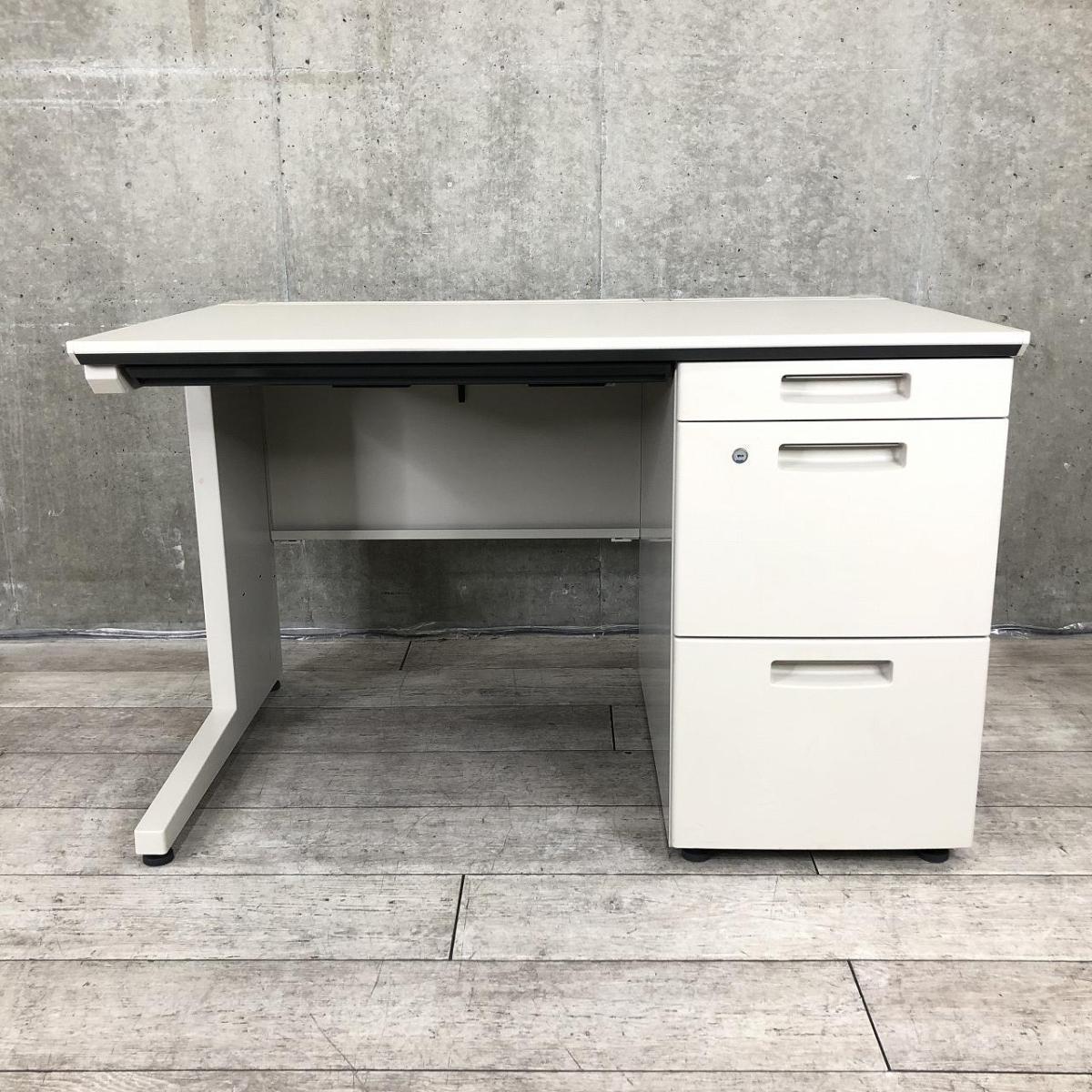 【コンパクトなオフィスの定番!3段引き出しの袖付きデスク!使いやすい配線孔が便利!】■コクヨ(KOKUYO)製 新MX(MX+)シリーズ 片袖机 ■W1000×D700㎜ ■シリンダー錠 ■ライトグレー