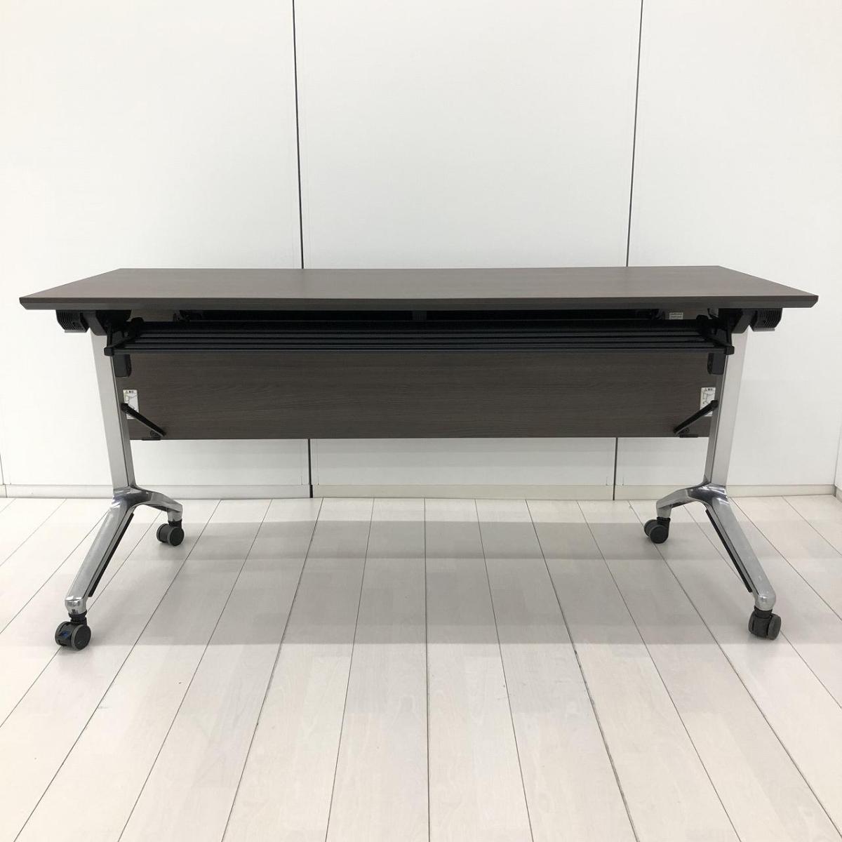 【エグゼグティブからカジュアルまで幅広くカバーするフラップテーブル!】■コクヨ(KOKUYO)製 コンフェスト(CONFEST)シリーズ サイドスタックテーブル ミーティングテーブル W1500×D600㎜ ■幕板付 ■天板:ブラウン/脚:ポリッシュ【2602】弊社使用欄【A01058121】- 埼玉本店