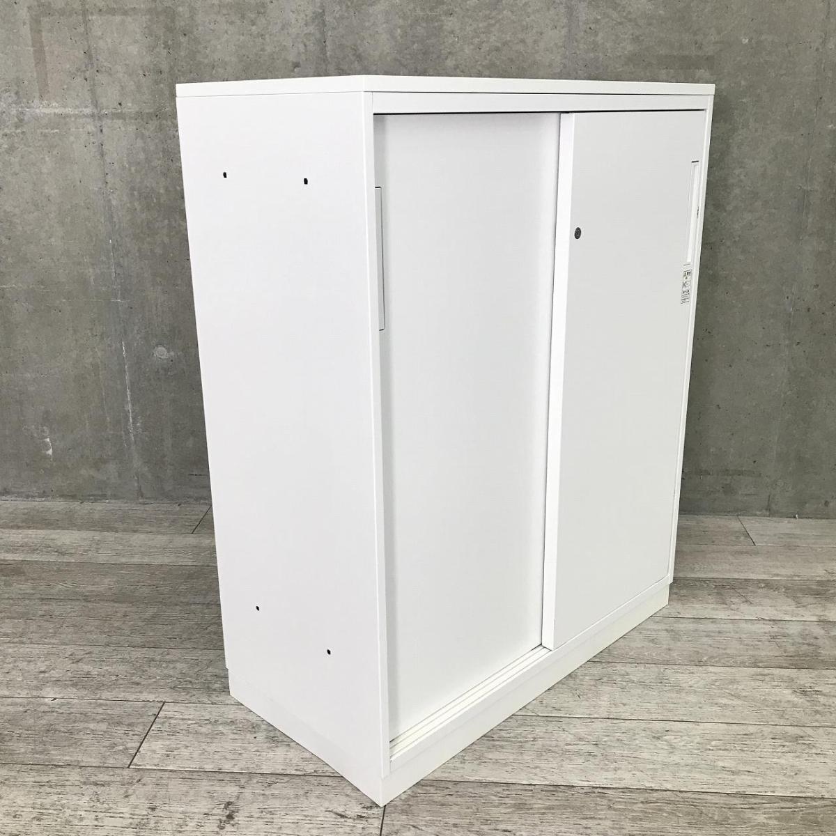 【手狭なオフィスで大活躍!導線を確保できる引き違い戸のキャビネット!】■コクヨ(KOKUYO)製 エディア(EDIA)シリーズ 引き違い書庫 ローキャビネット ■3枚扉 ■シリンダー錠 ■天板・ベース付き ■ホワイト