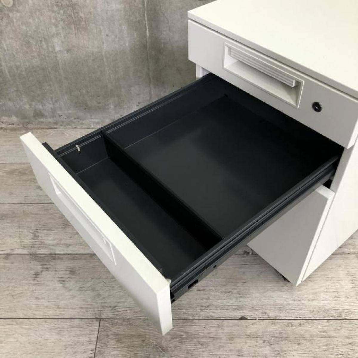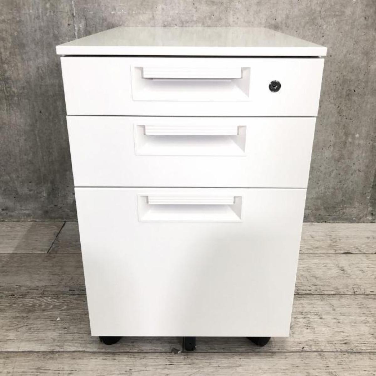 ■プラス(PLUS)製 ■LEEDシリーズ ■3段ワゴン ■デスクインワゴン ■H600㎜ ■シリンダー錠 ■ホワイト 【弊社使用欄:A01047931】【ID】