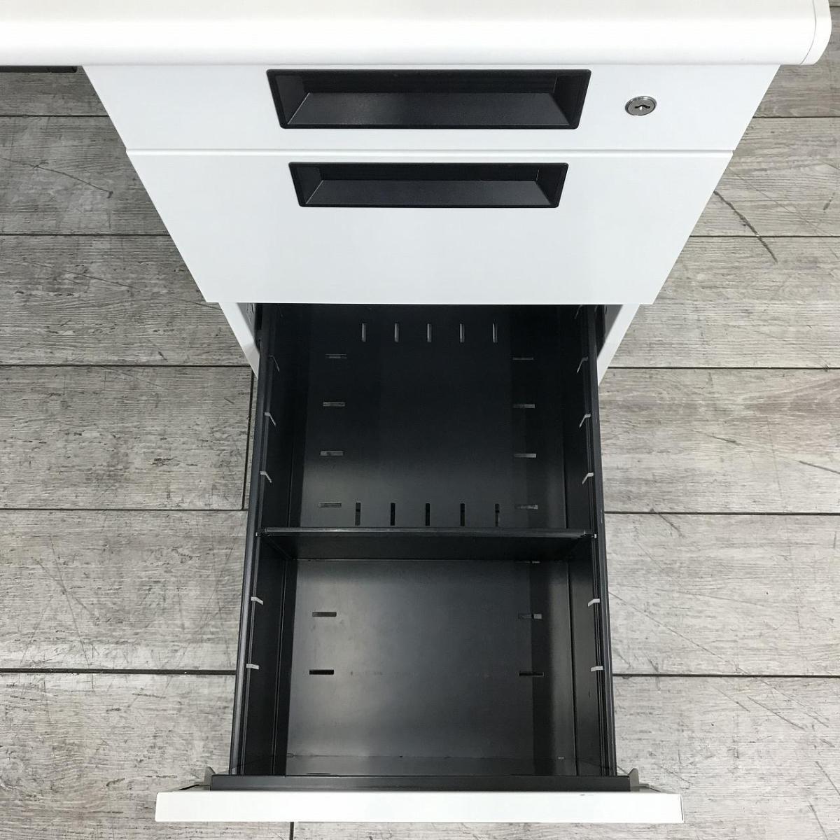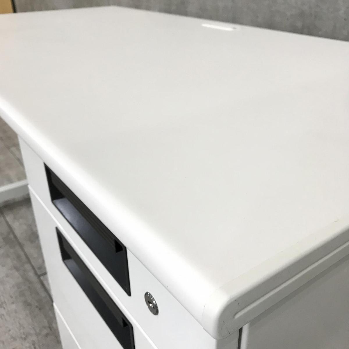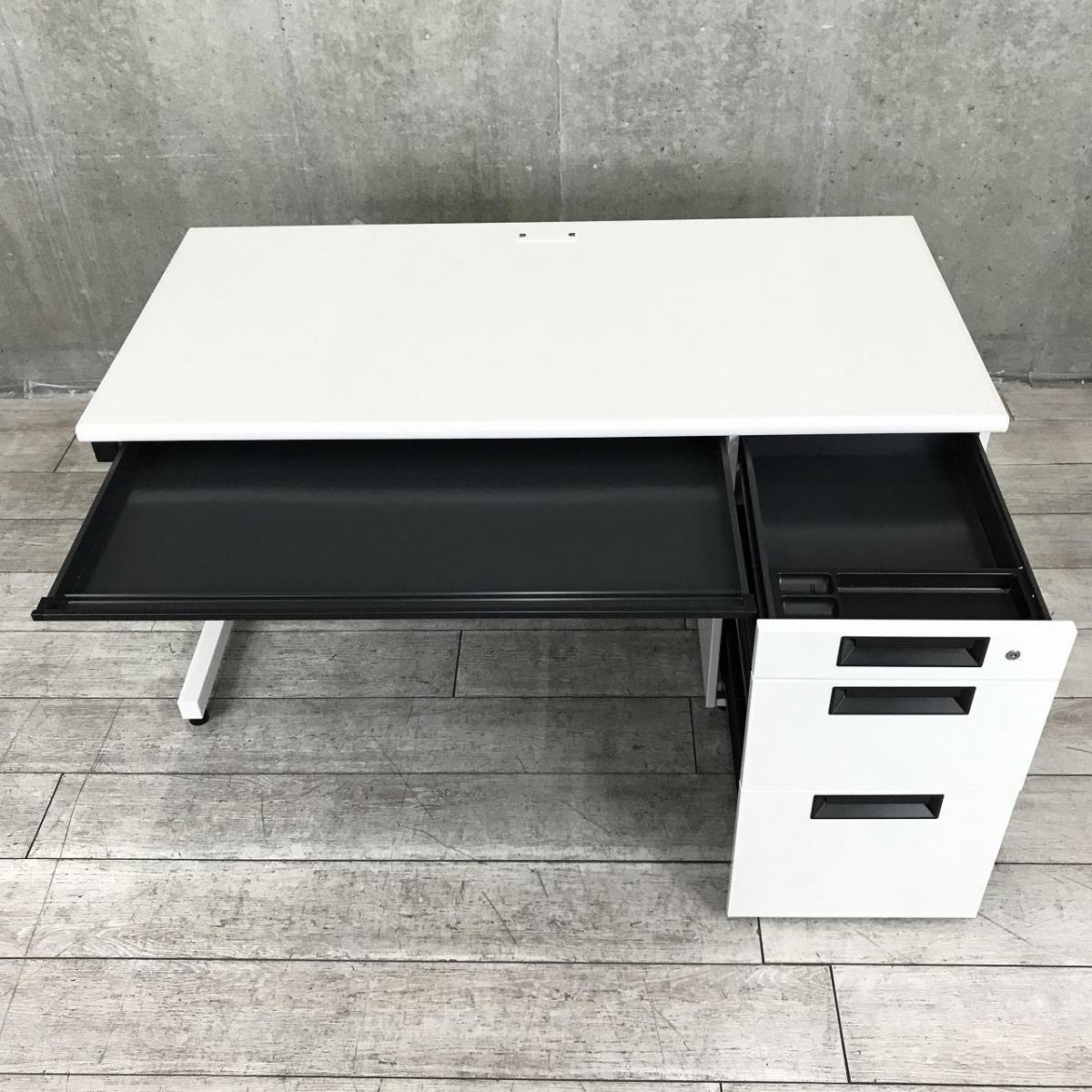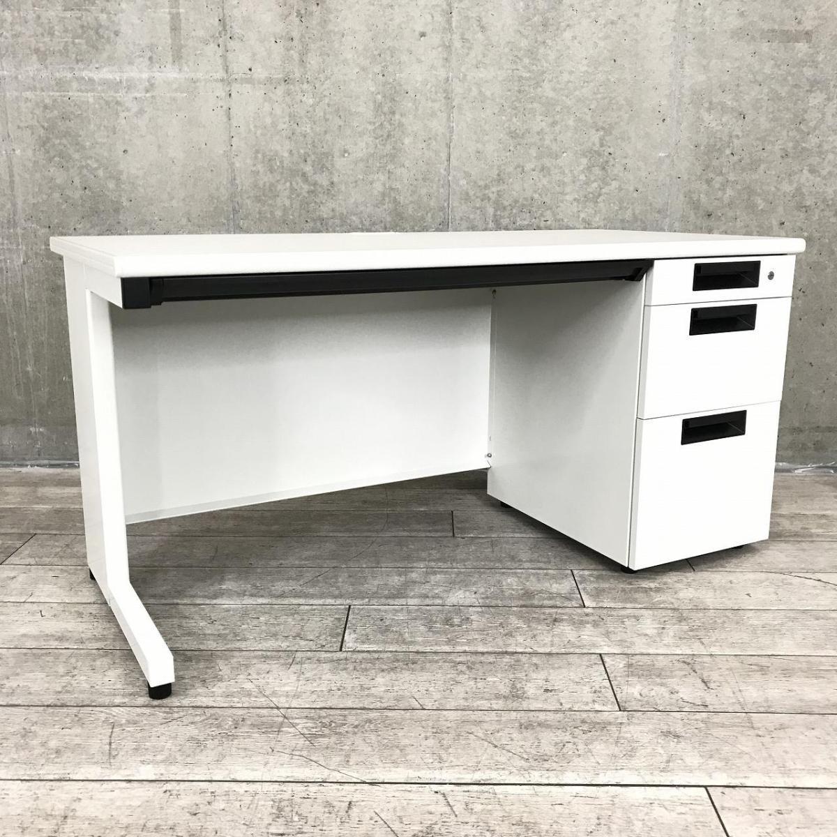 【スタンダードなデザインで使いやすい!】■プラス(PLUS)製 フラットラインシリーズ 片袖机 ■W1400×D700×H720mm ■シリンダー錠 ■ホワイト 【弊社使用欄:A01053736】- 日本橋店