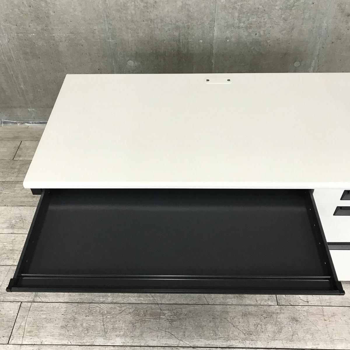 プラス製の定番シリーズ「フラットライン」のホワイトデスクが入荷しました。