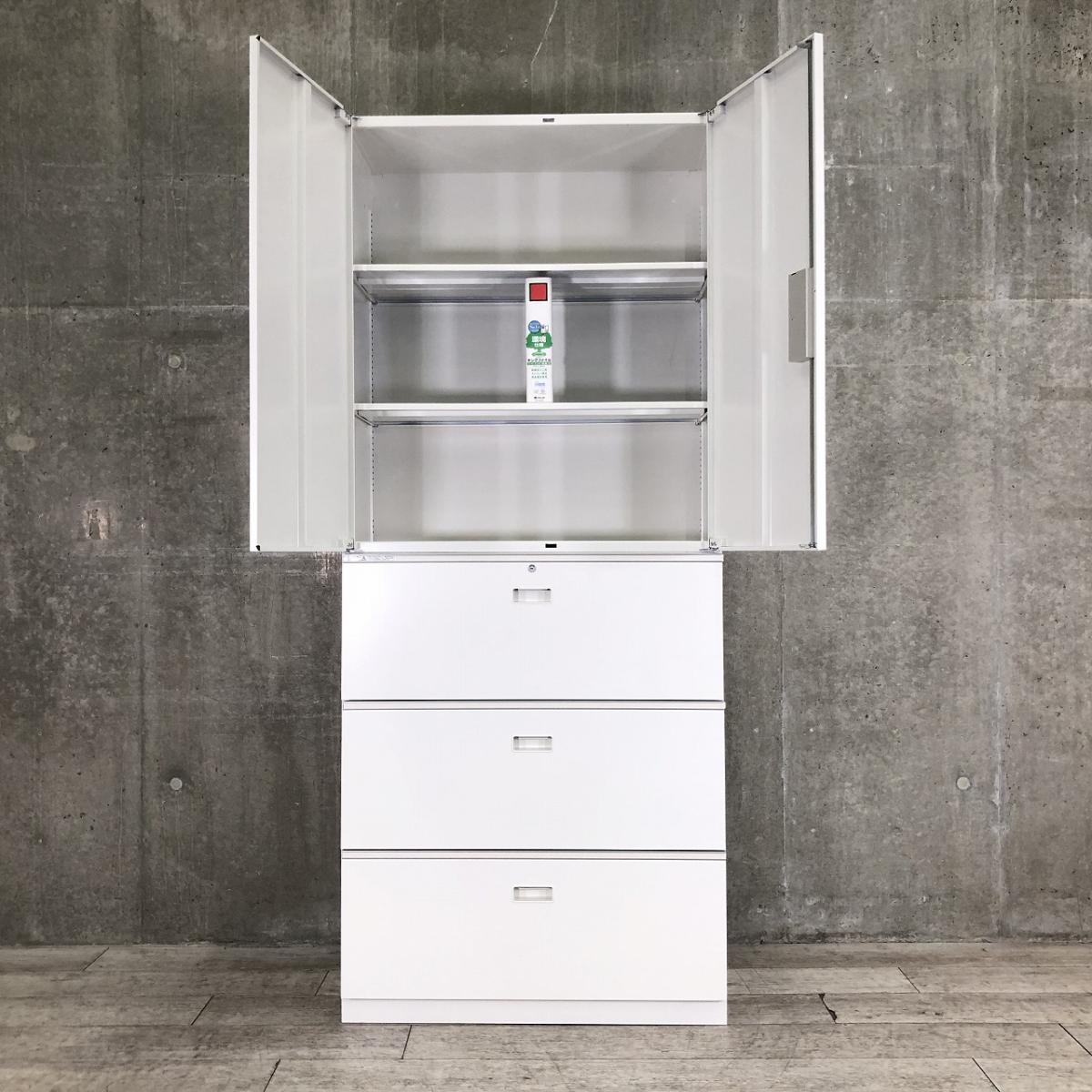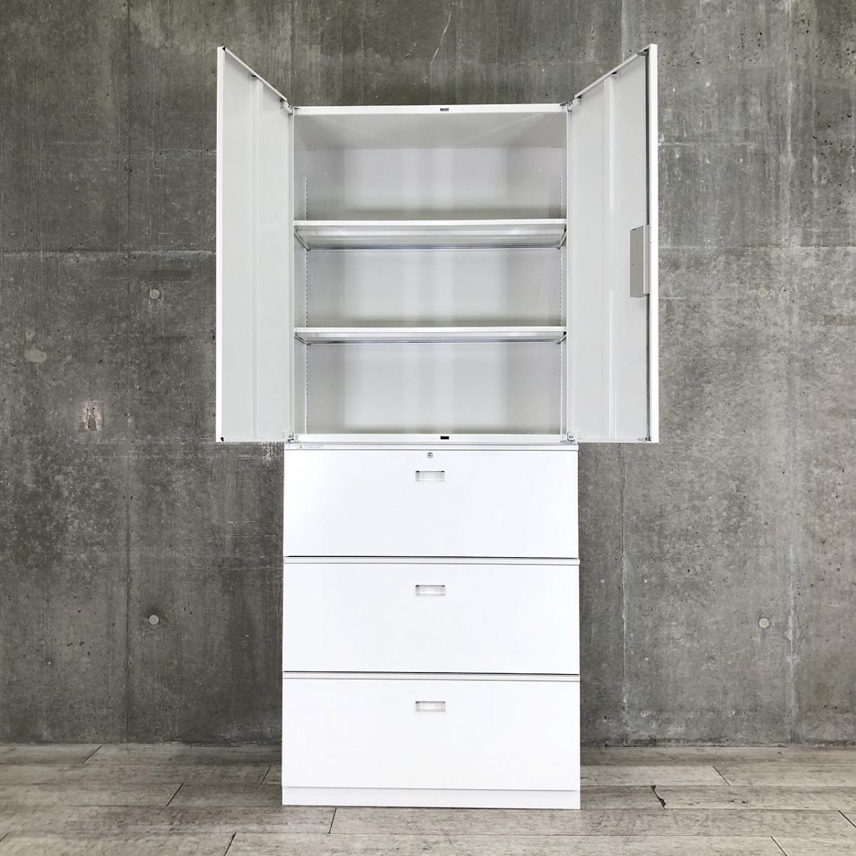 /オススメ(おすすめ) /人気商品 ■イトーキ (ITOKI)製 シンライン ハイキャビネット 両開き+3段ラテラル 書庫セット ホワイト シリンダー錠