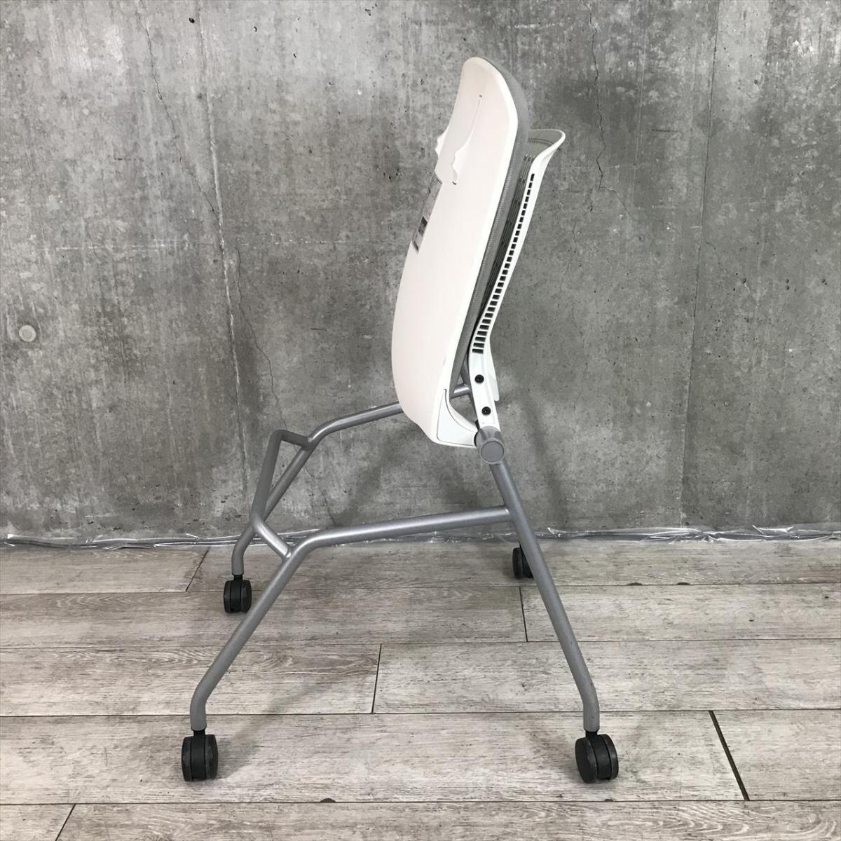 キャスター付きで軽快に水平移動できる4本脚タイプで、座を跳ね上げることにより平行にネスティングが可能です。