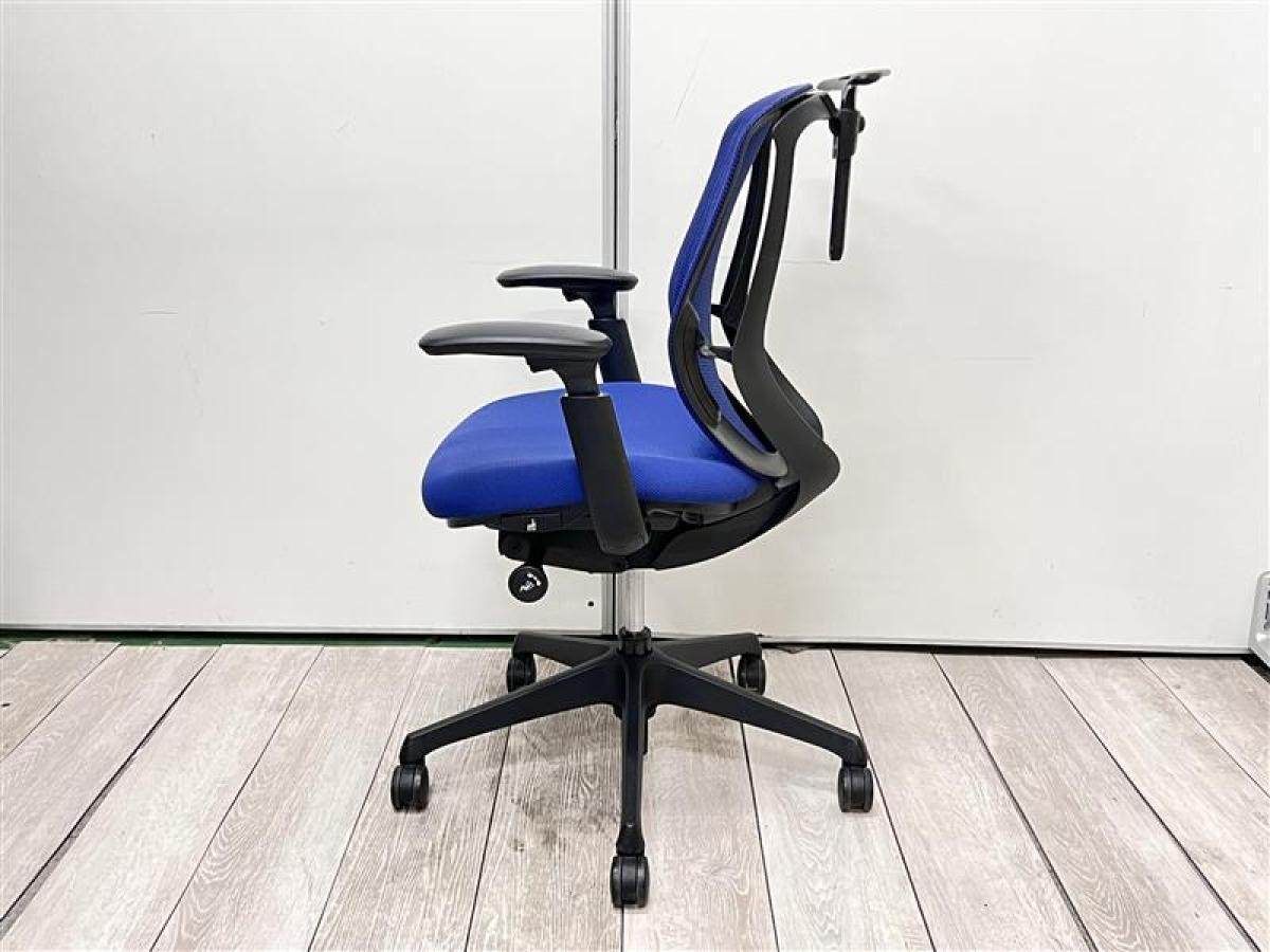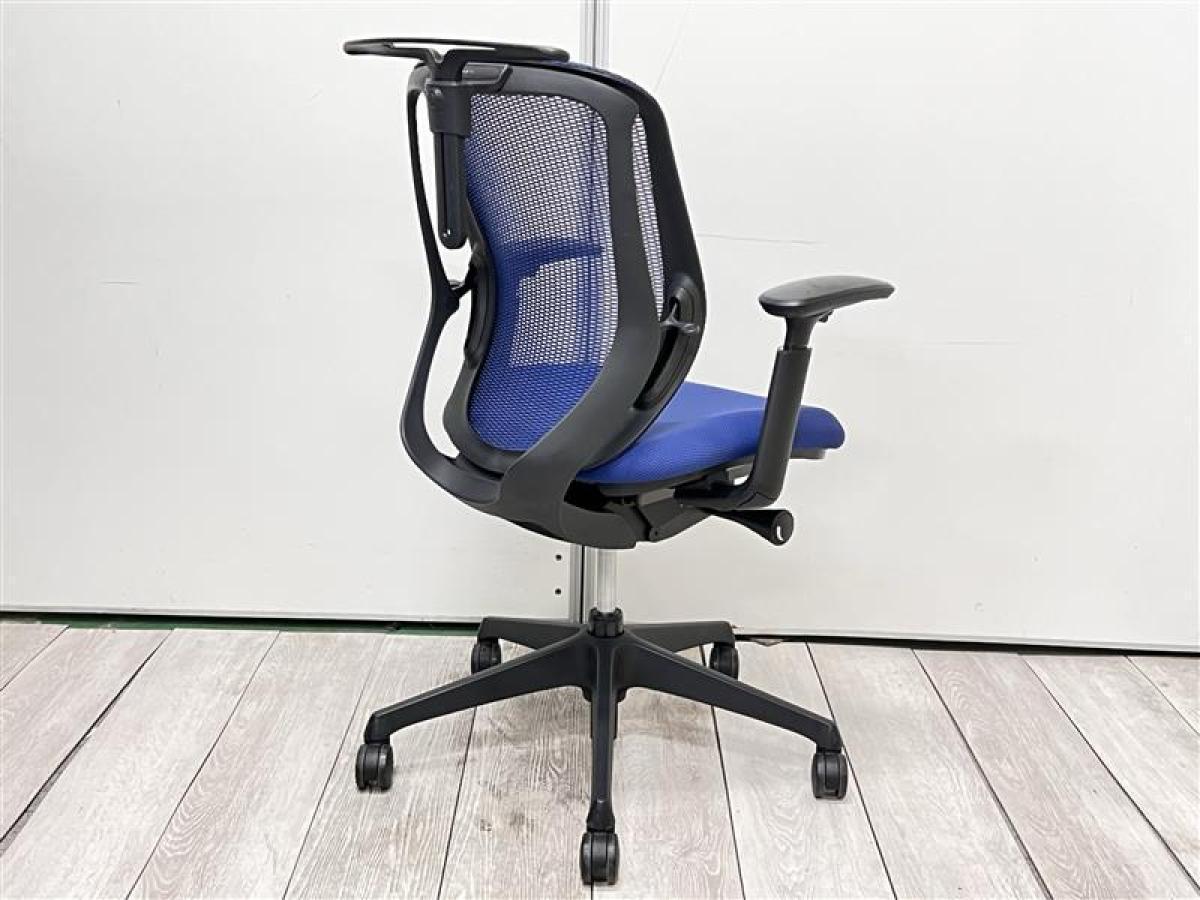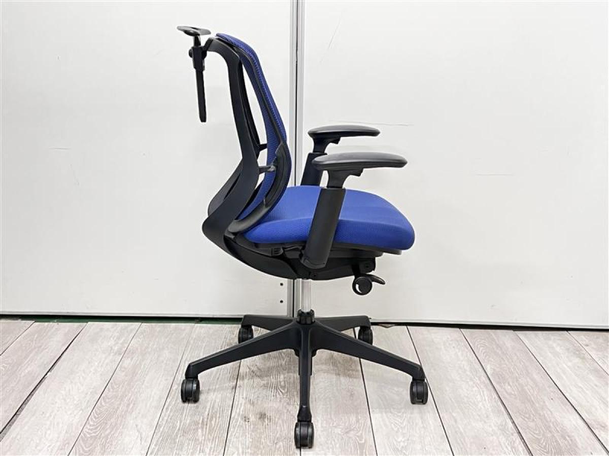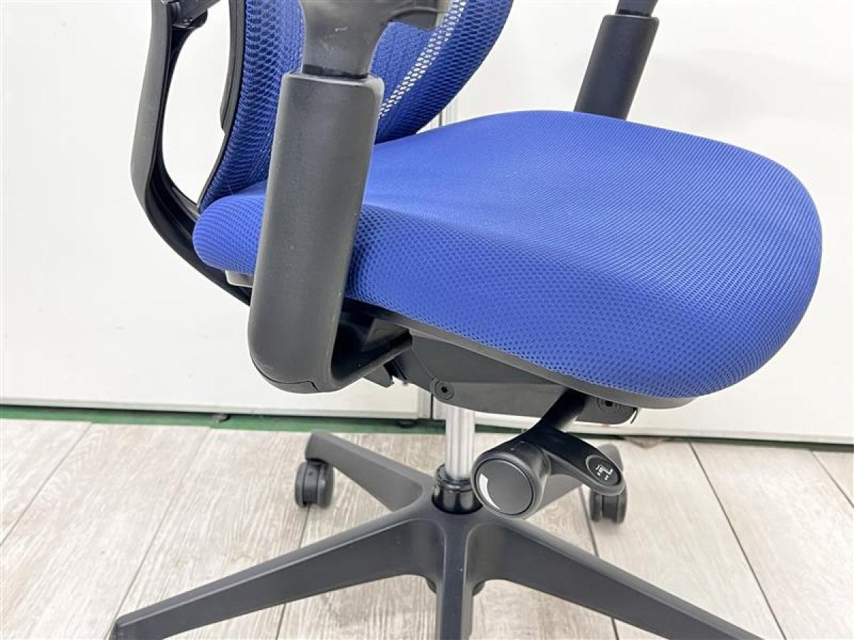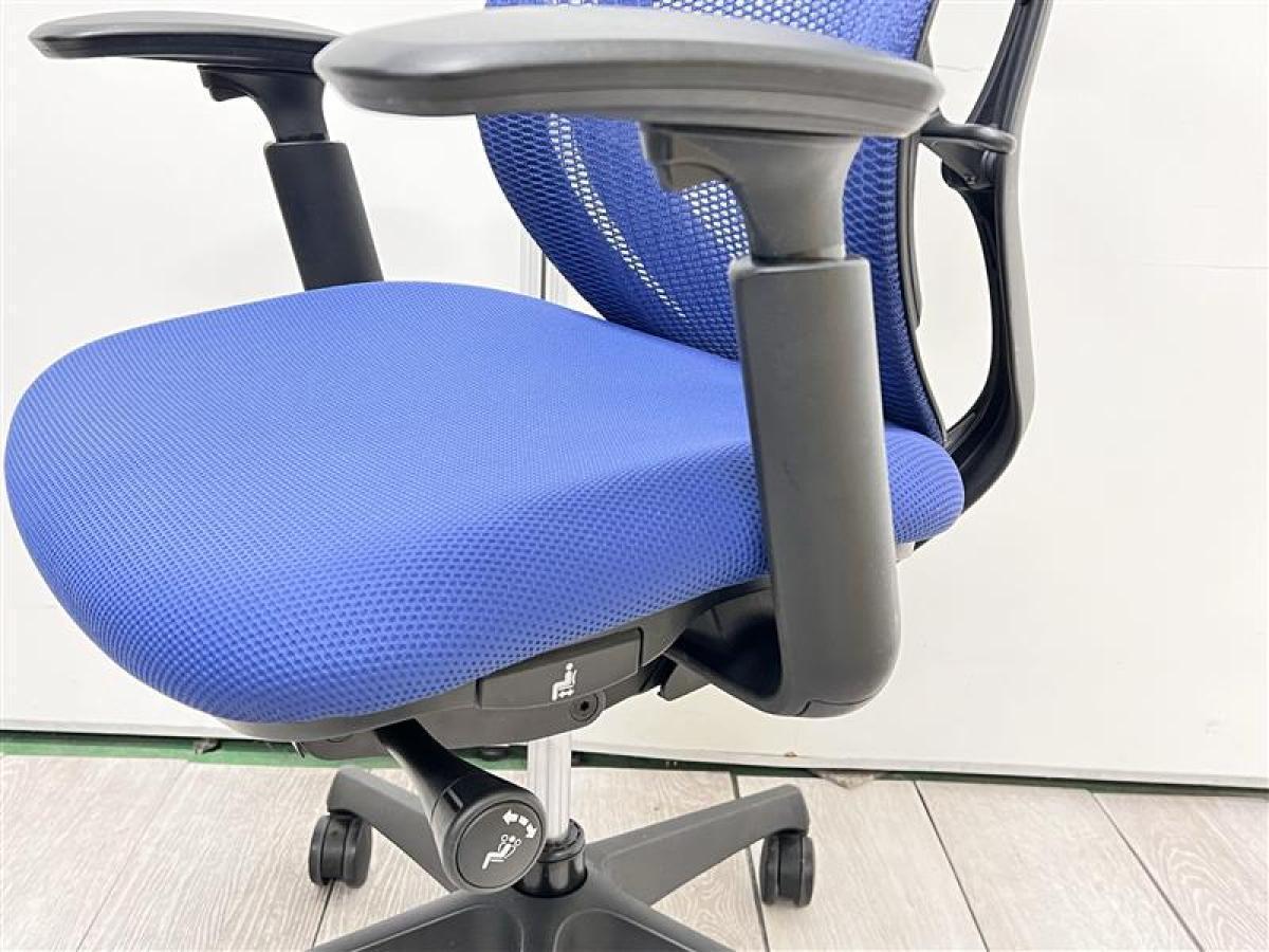 ★オカムラ製 シルフィー(Sylphy) ミディアムブルー ブラックフレーム 肘付き ローバック 背面メッシュ アジャストアーム※可動肘 前傾機能チェアの代名詞! 大人気シルフィーチェア! 肘付きローバックチェア!!
