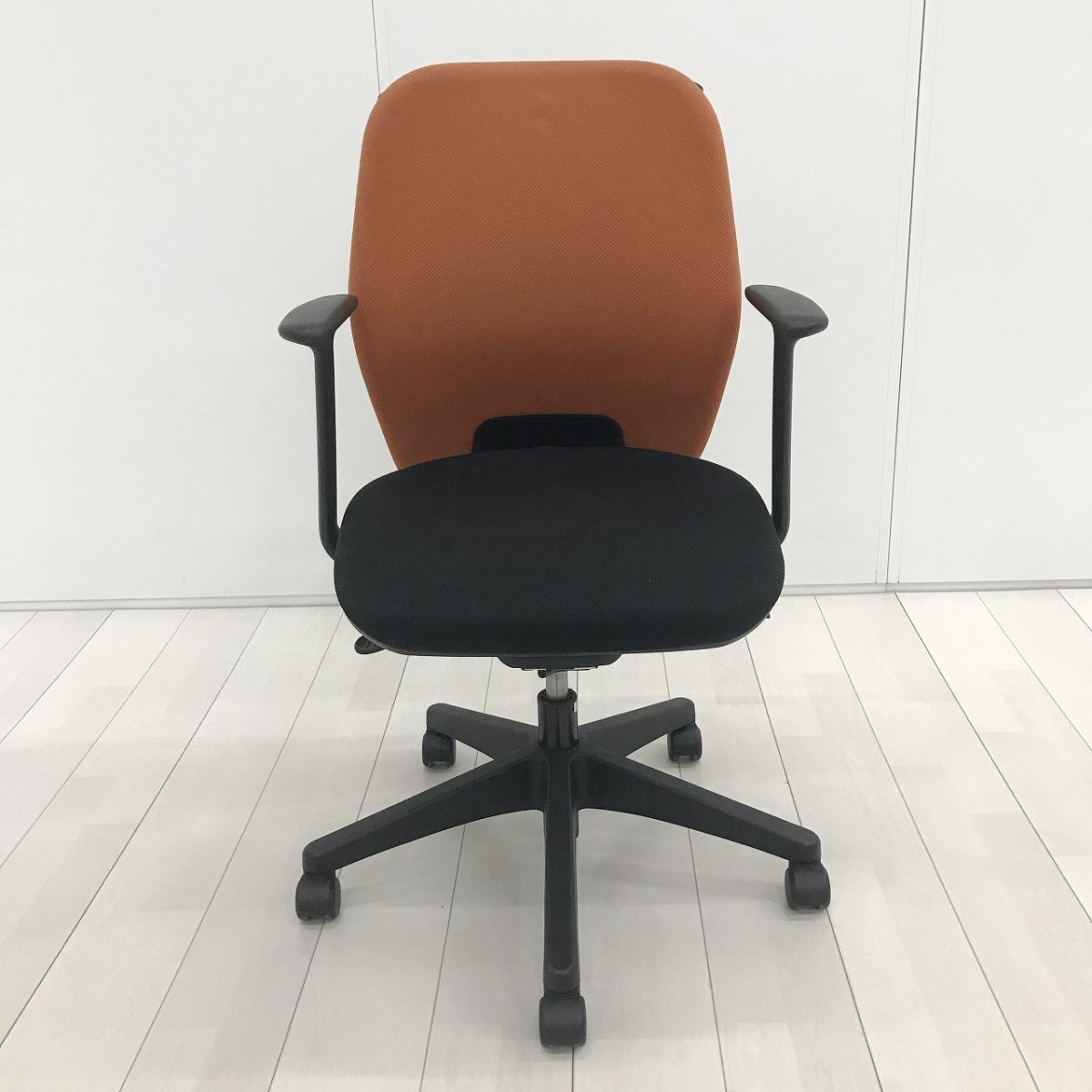 【スタンダードな機能搭載!デスクワークに過不足無しのオフィスチェア】■ウチダ(UCHIDA)製 シエルト(CIERTO)チェア 肘付き ミドルバックチェア ■L型固定肘・ハンガー付き ■背面:テラコッタオレンジ/座面:ブラック