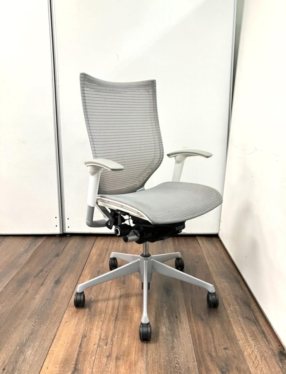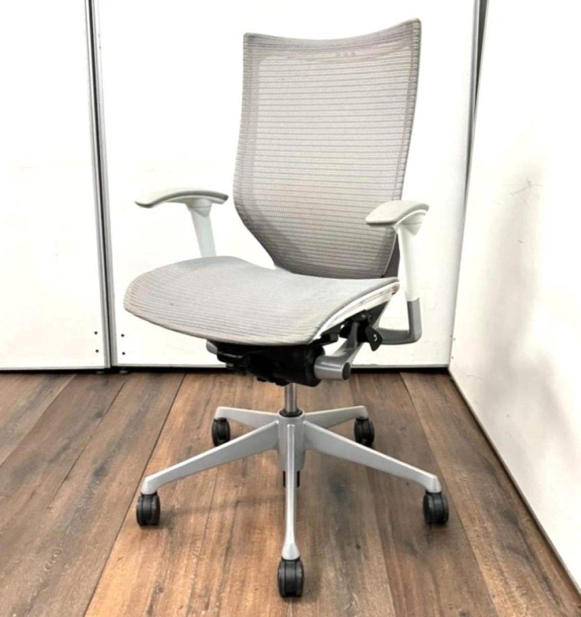 【ワンランク上のワーキングチェア!長時間のデスクワークも快適にサポート!】■オカムラ バロンチェア 可動肘付 ライトグレー 背座メッシュ ■人間工学に基づいた快適設計!【Okamura Baron】- 川崎店