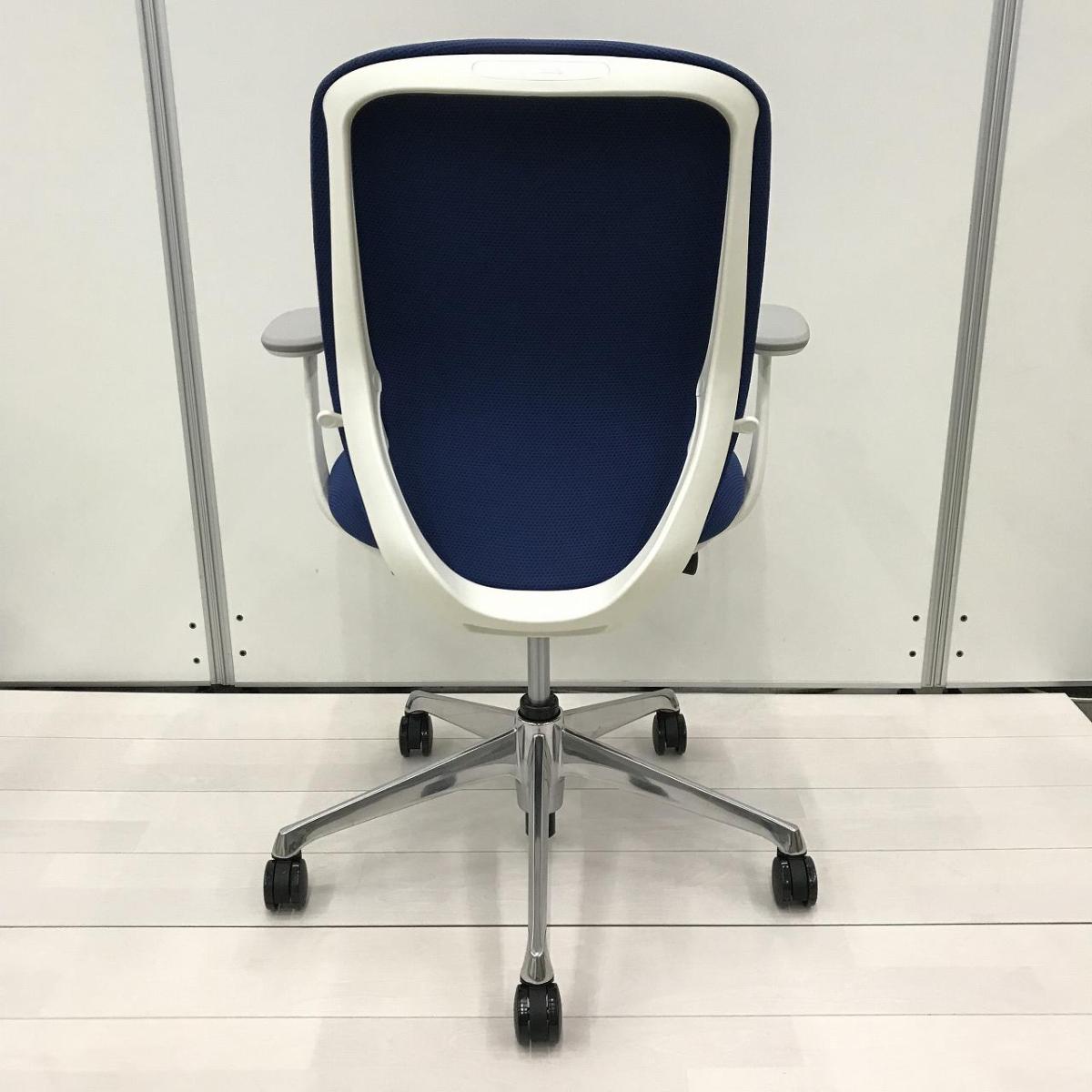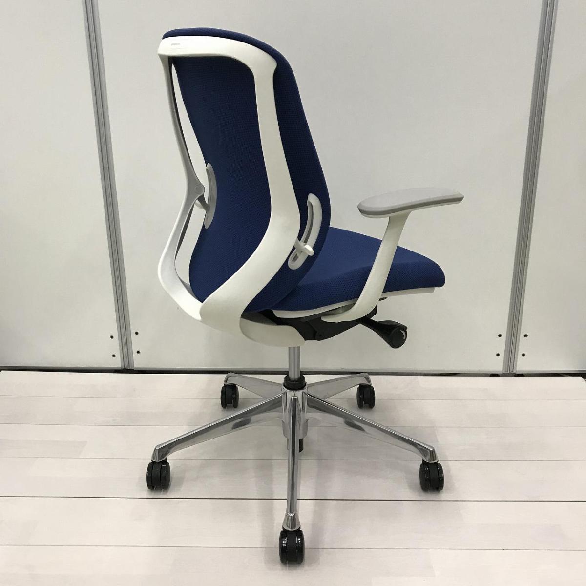 【クレジット決済優先!】新古品!【前傾チルト機能付き!オカムラ製品で最も人気を集める高機能チェア!】■オカムラ製 シルフィー(Sylphy) 肘付きローバックチェア ■固定肘 ■ブルー ×ホワイトシェル【OKT5】【弊社使用欄:A01053014】新古