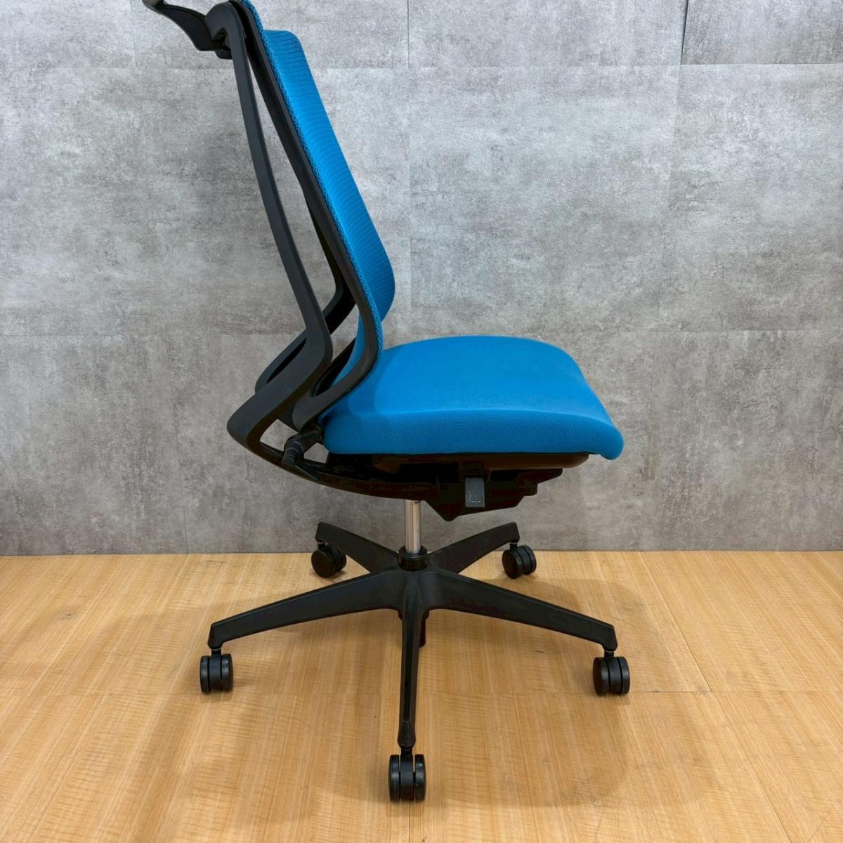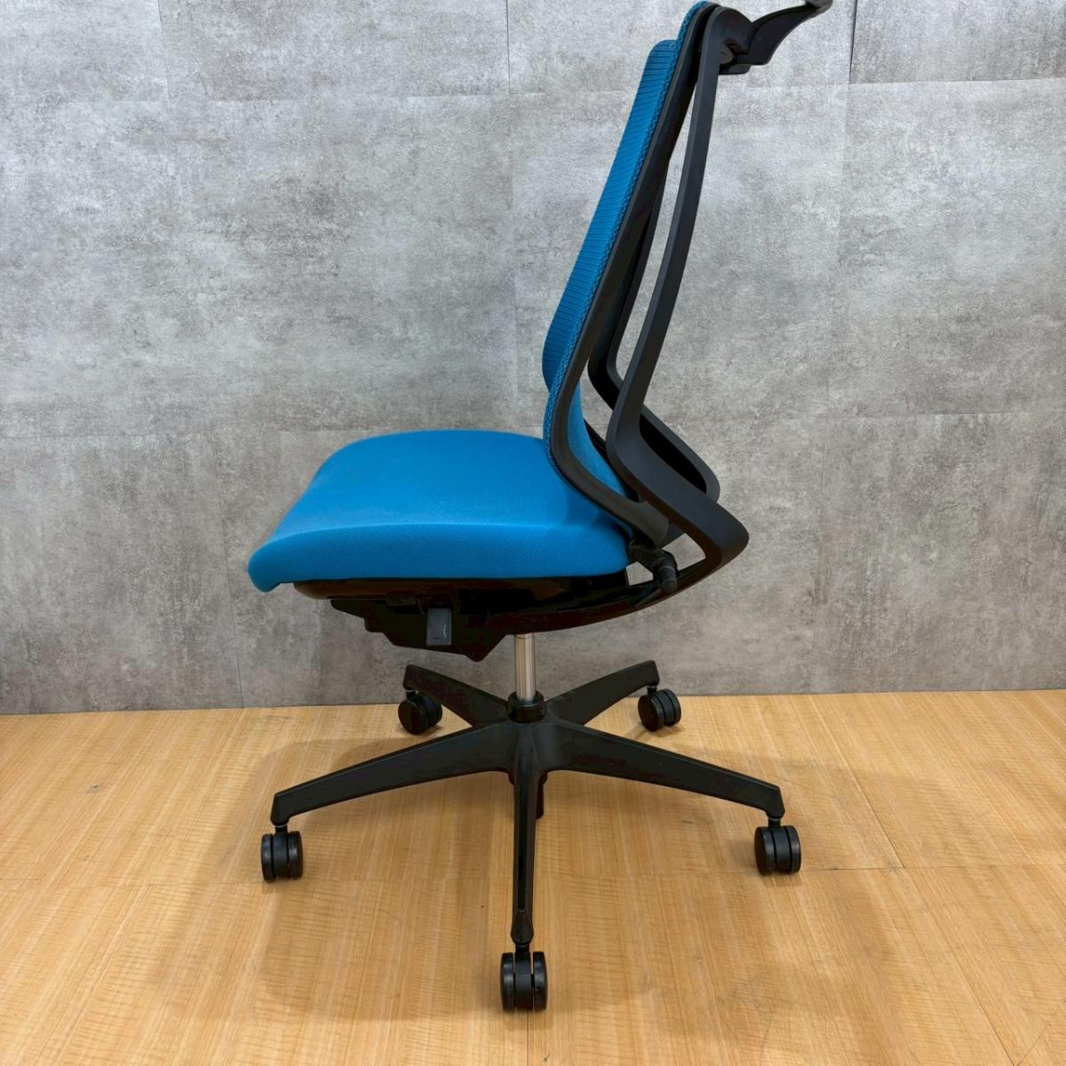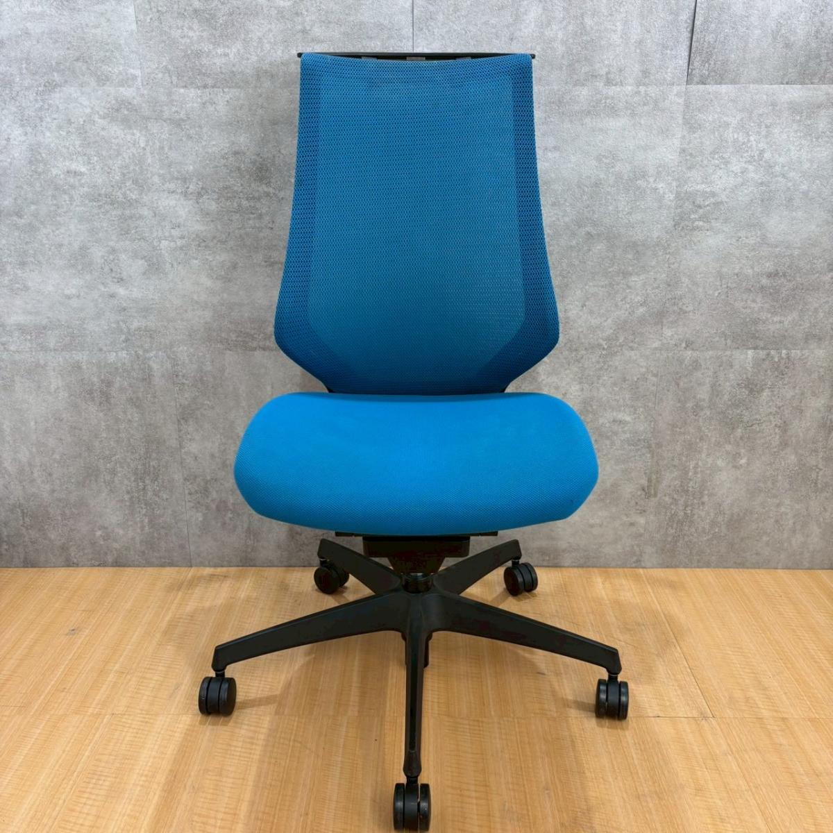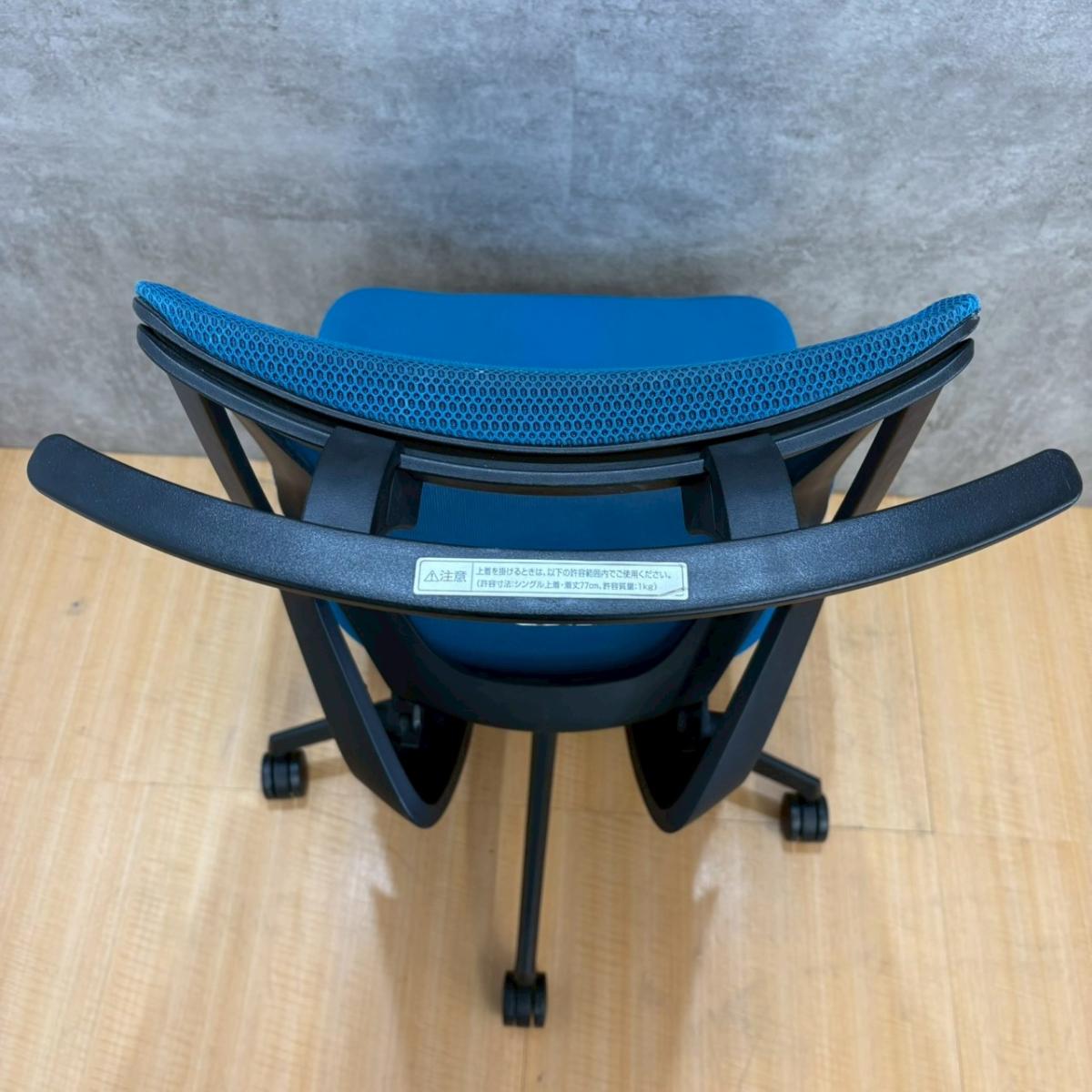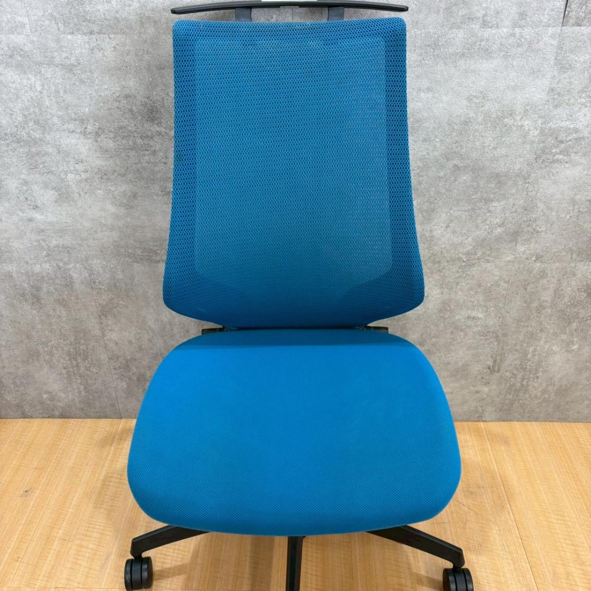 ★【K1】【T1】コクヨ製 デュオラ(Duora) ターコイズブルー ハイバック 背面メッシュ コートハンガー付 二重フレーム構造がもたらすしなやかで美しい背もたれ機能! 簡易操作で自分に合った姿勢をサポート! 肘無しハイバックチェア!!