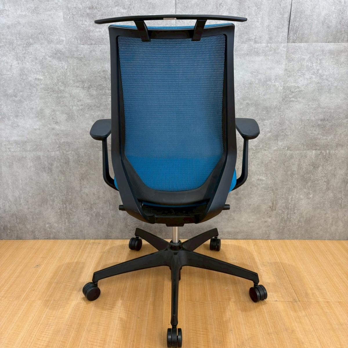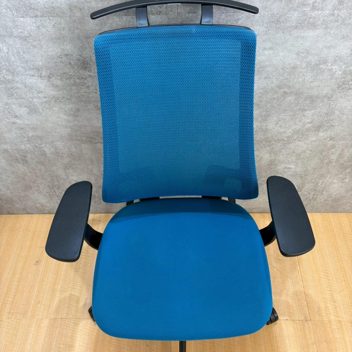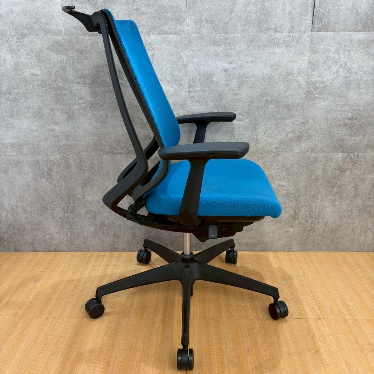 ■コクヨ(KOKUYO)製 ■デュオラ(Duora)チェア ■肘付き/可動肘 ■ハイバック ■背面メッシュ ■ヘッドレスト付き ■ランバーサポート付き ■ブルー×ホワイトシェル 【弊社使用欄:A01062318 】【KN】