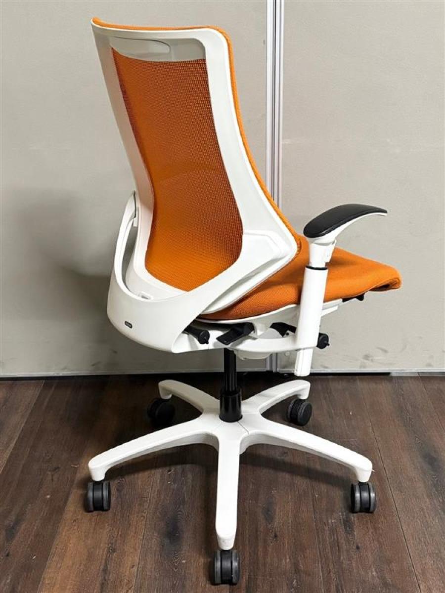 【高機能で座り心地も抜群!姿勢の変化にフレキシブルに対応】イトーキ製 エフチェア ハイバック肘付き 可動肘 背面メッシュ オレンジ × ホワイトフレーム #岐阜#愛知#三重#静岡#CS在庫- 名古屋千種店