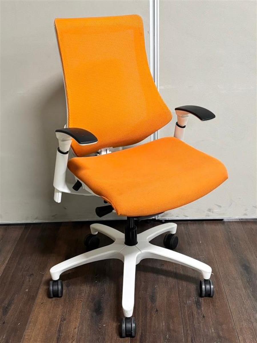 【訳アリ特価品】【高機能で座り心地も抜群!姿勢の変化にフレキシブルに対応】イトーキ製 エフチェア ハイバック肘付き 可動肘 背面メッシュ オレンジ × ホワイトフレーム #岐阜#愛知#三重#静岡#CS在庫
