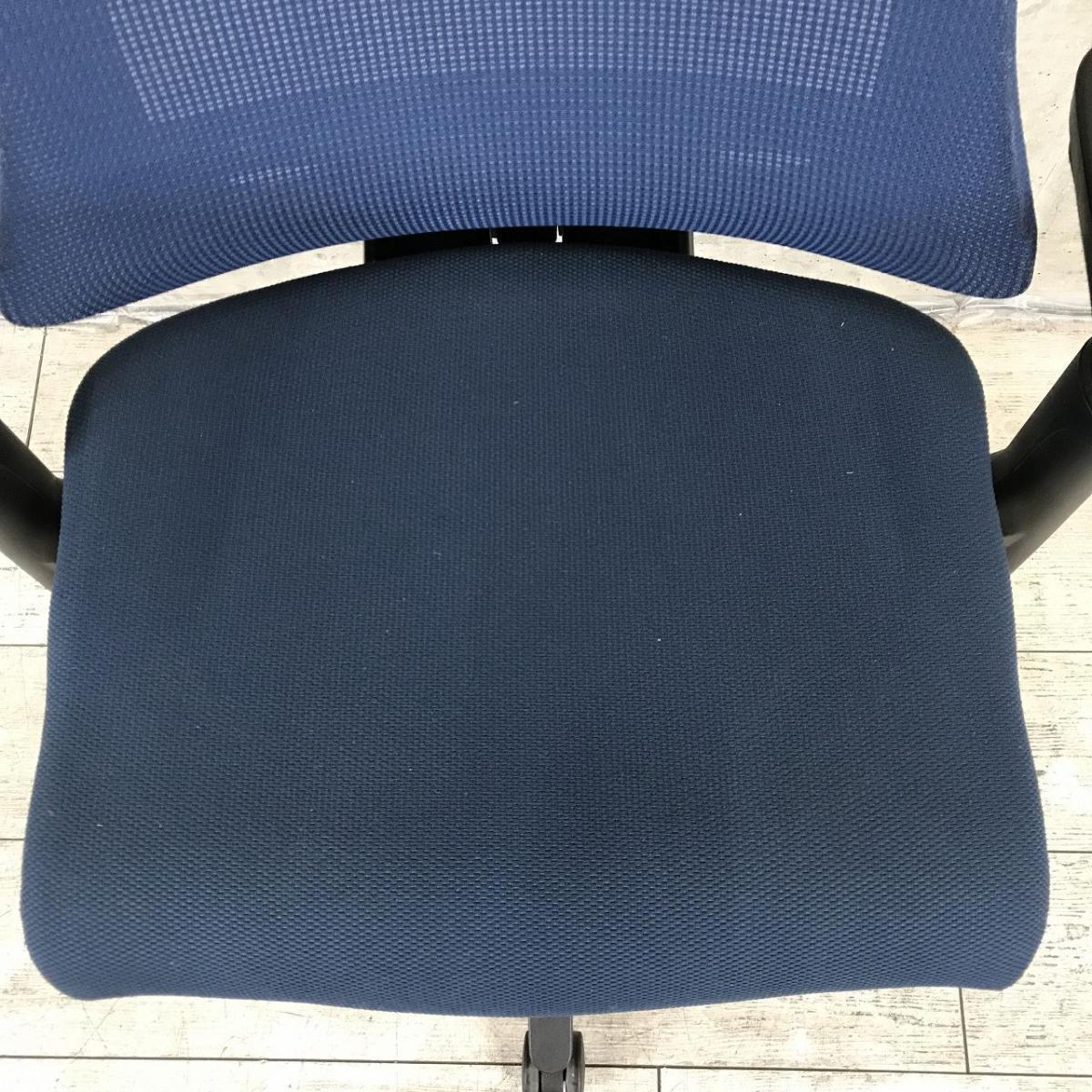 【重複】【姿勢の変化にフレキシブルに対応!スタイリッシュなデザインのメッシュチェア!】■イトーキ(ITOKI)製 エフ(f)チェア 肘付き ハイバック 背面メッシュ ■可動肘 ■ハンガー付き ■ストロングブルー×ホワイトシェル ※キズ、日焼けあり