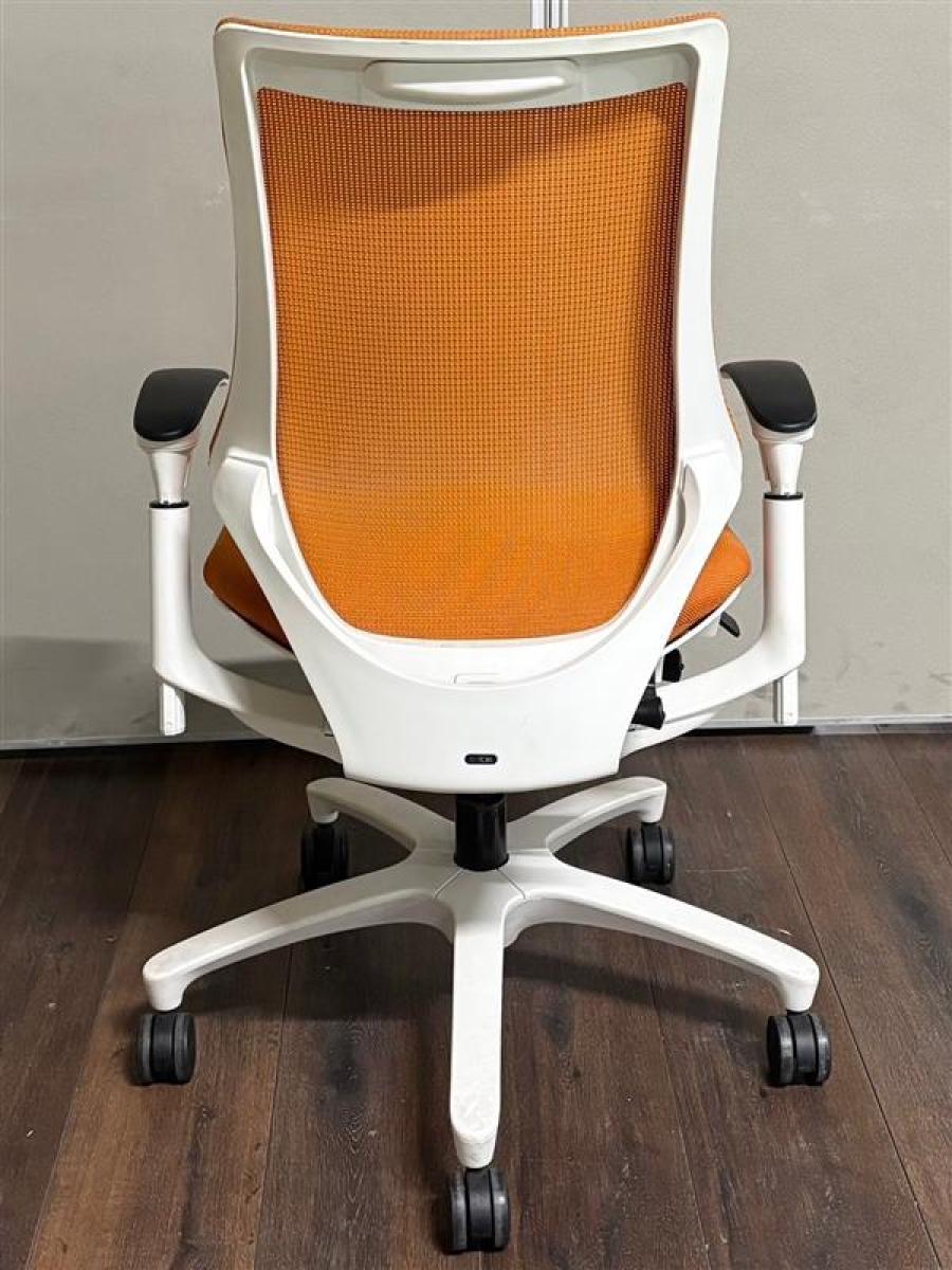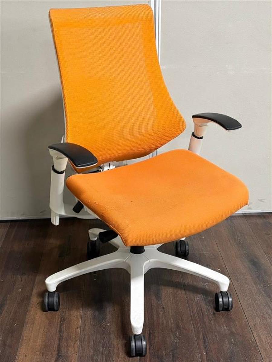 【訳アリ特価品】【高機能で座り心地も抜群!姿勢の変化にフレキシブルに対応】イトーキ製 エフチェア ハイバック肘付き 可動肘 背面メッシュ オレンジ × ホワイトフレーム #岐阜#愛知#三重#静岡#CS在庫