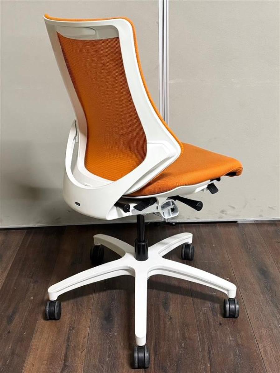 【高機能で座り心地も抜群!姿勢の変化にフレキシブルに対応】イトーキ製 エフチェア ハイバック肘なし 背面メッシュ オレンジ × ホワイトフレーム #岐阜#愛知#三重#静岡#CS在庫- 浜松サテライト
