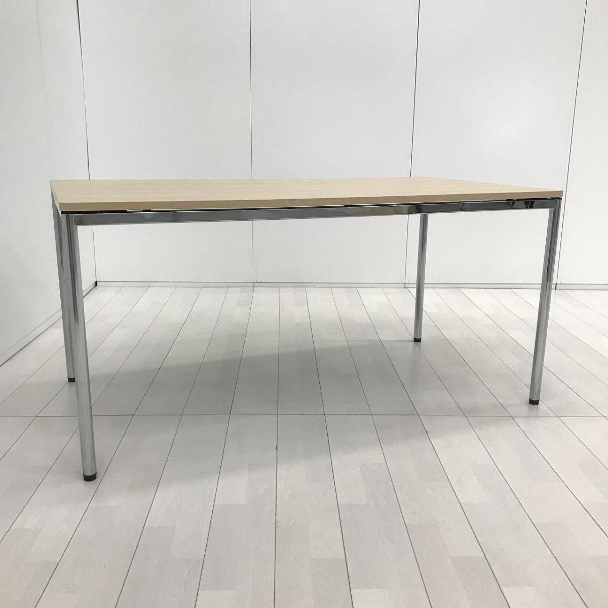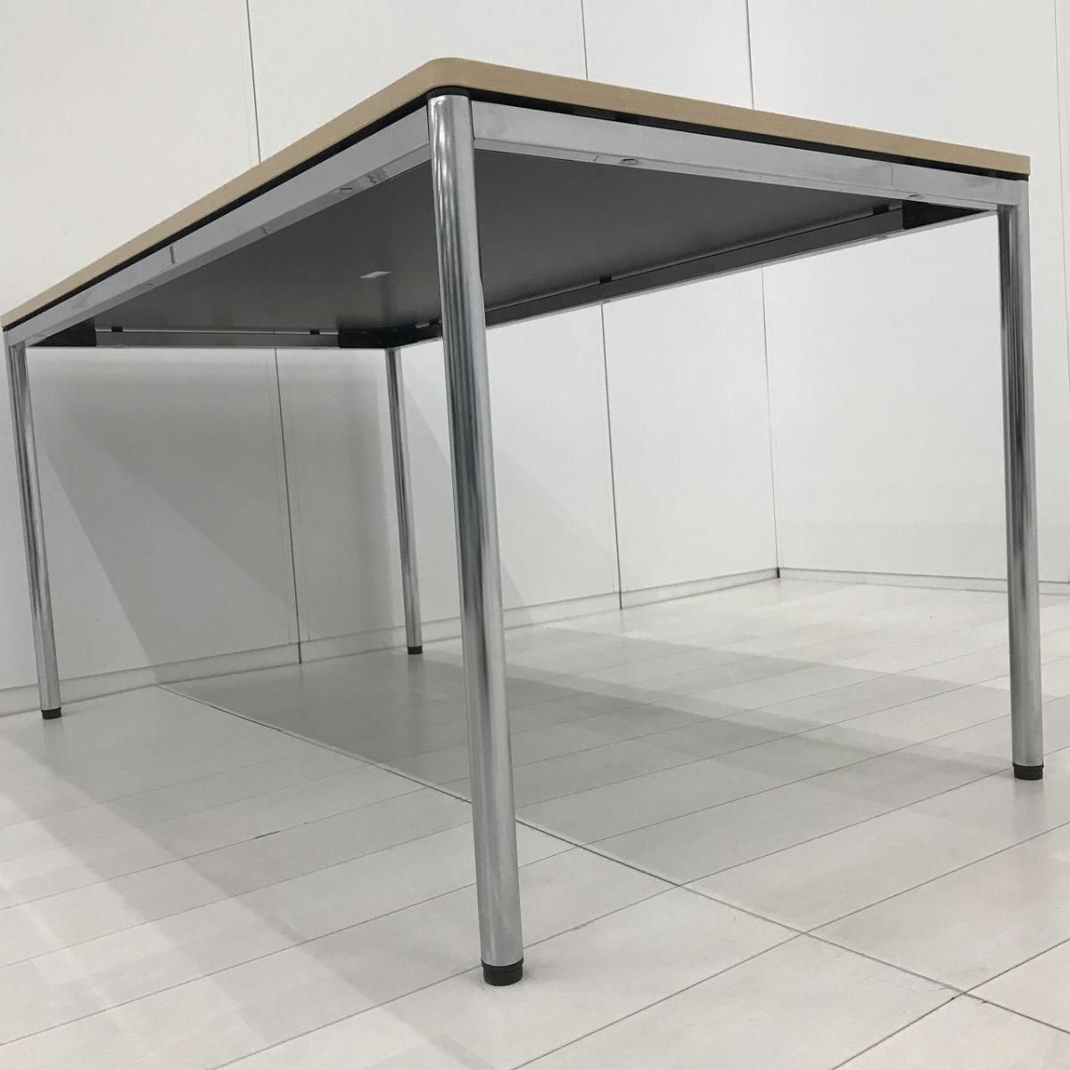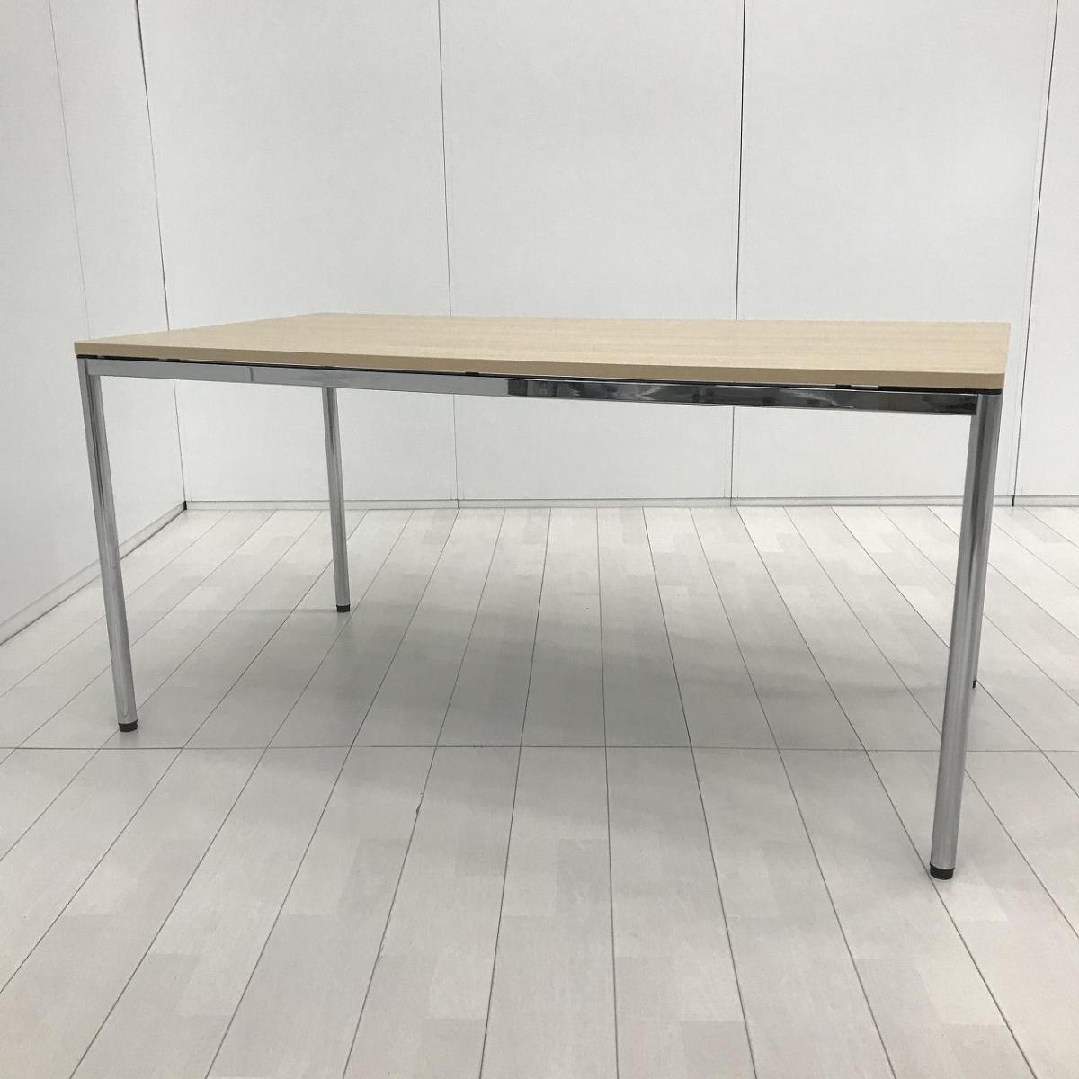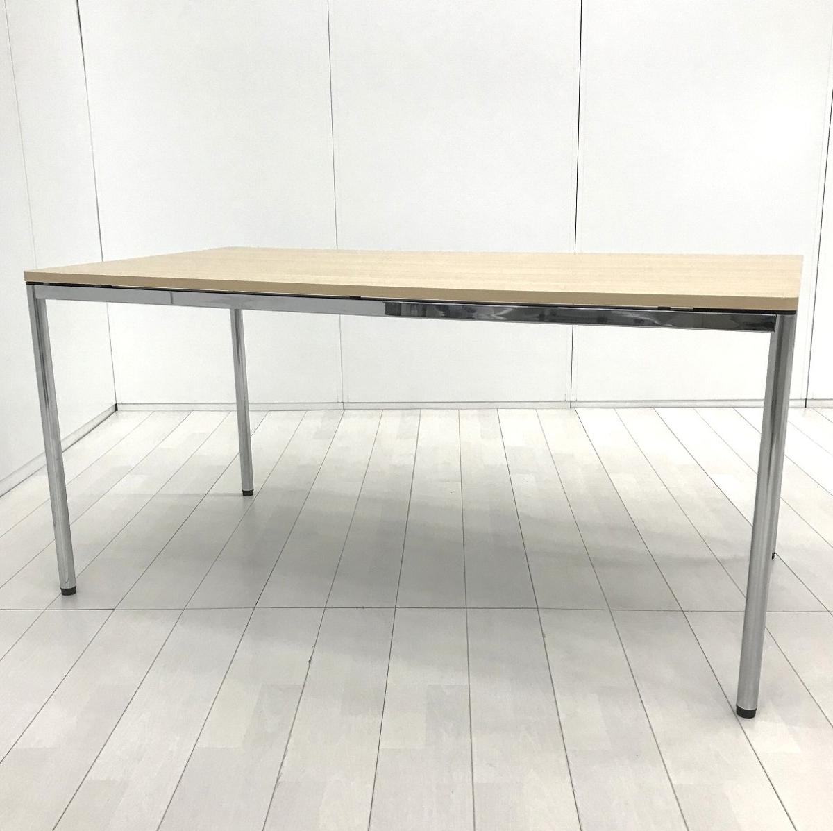 【シンプルで上質なデザインが人気です!】■オカムラ トレッセアールシリーズ ミーティングテーブル W1500×D800×H720mm ネオウッドライト クロムメッキ脚【Okamura tresse-R】- 川崎店