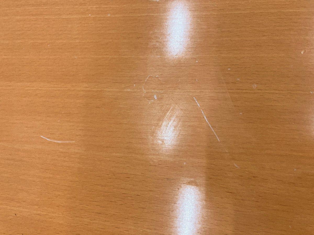 - あり黄ばみ・変色が広い範囲にうっすらある、または濃い黄ばみ・変色が一部ある。(例、天板、幕板、棚板、サイド部分、脚部等にある。)