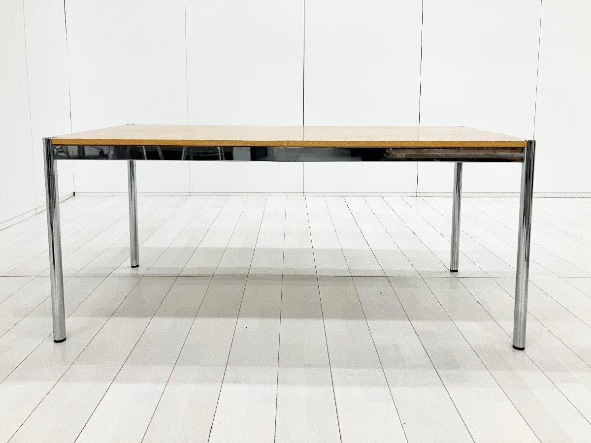システムキャビネットで著名な『USMハラー』の『ハラーテーブル』です。 シンプルな構成でミニマルなデザインながらもエレガントさを感じさせる非常にモダンなテーブルです。 脚先には最大4cmまで高さ調節できるアジャスターが付いており、同メーカーのキャビネットの高さを合わせて使用もできます。