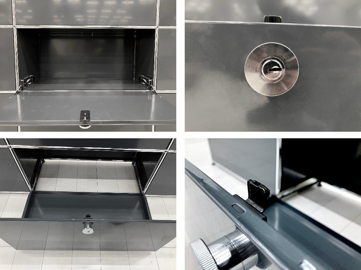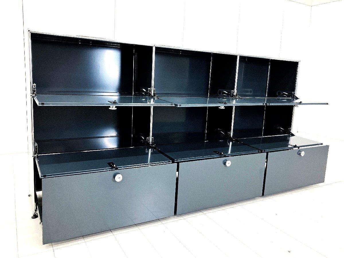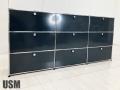 こちらは3列3段構成の大型ユニットで、カラーはUSMの中でも最も深みのあるグレーのアントラサイト。落ち着いたダークトーンとクロームフレームの組み合わせが、モダンで洗練された印象を与えます。