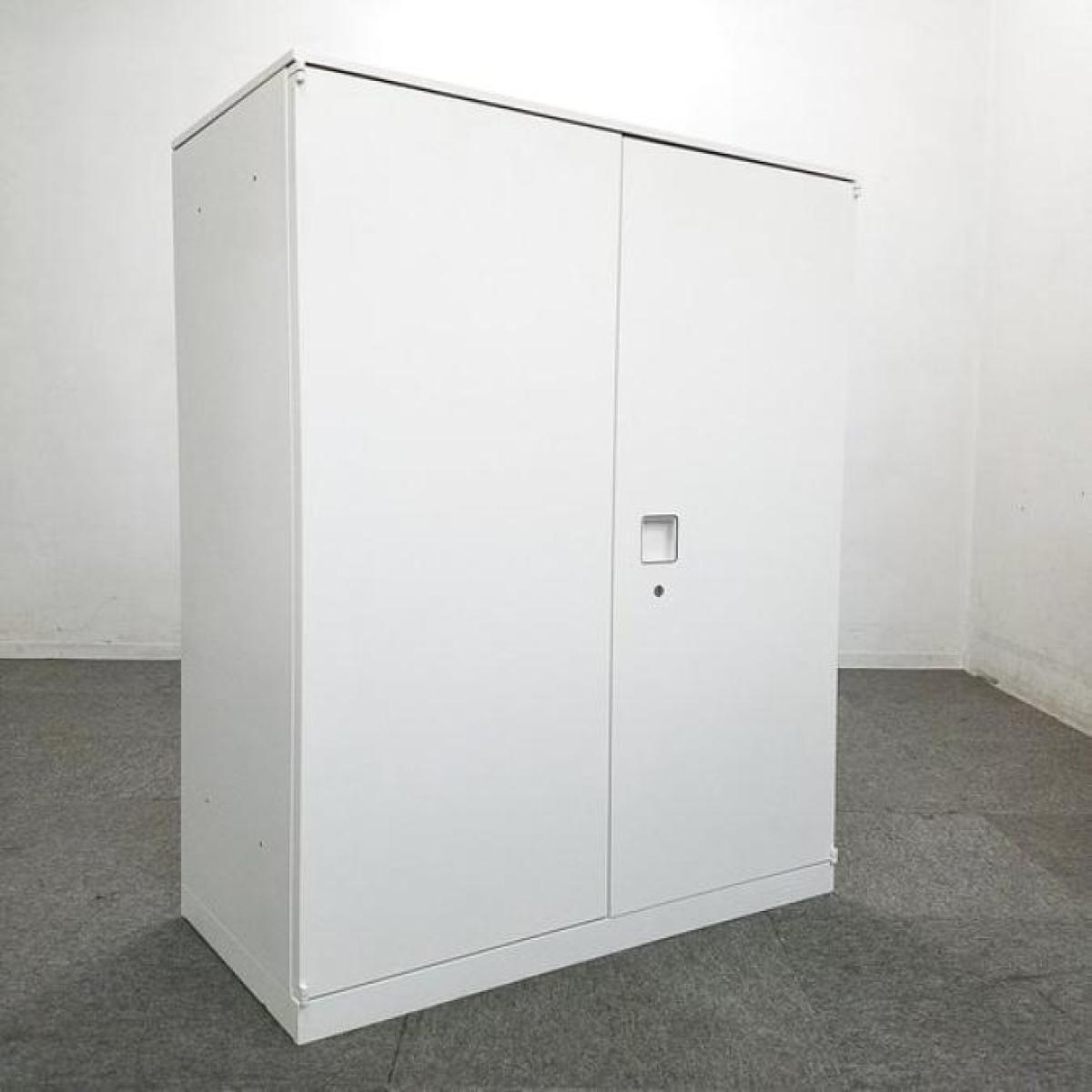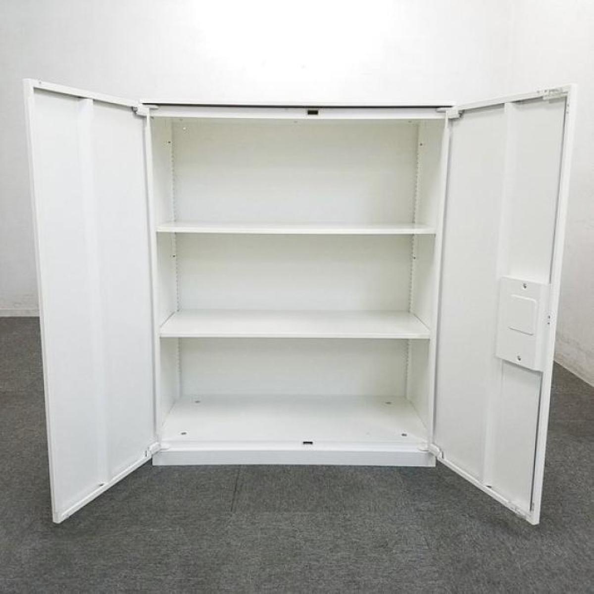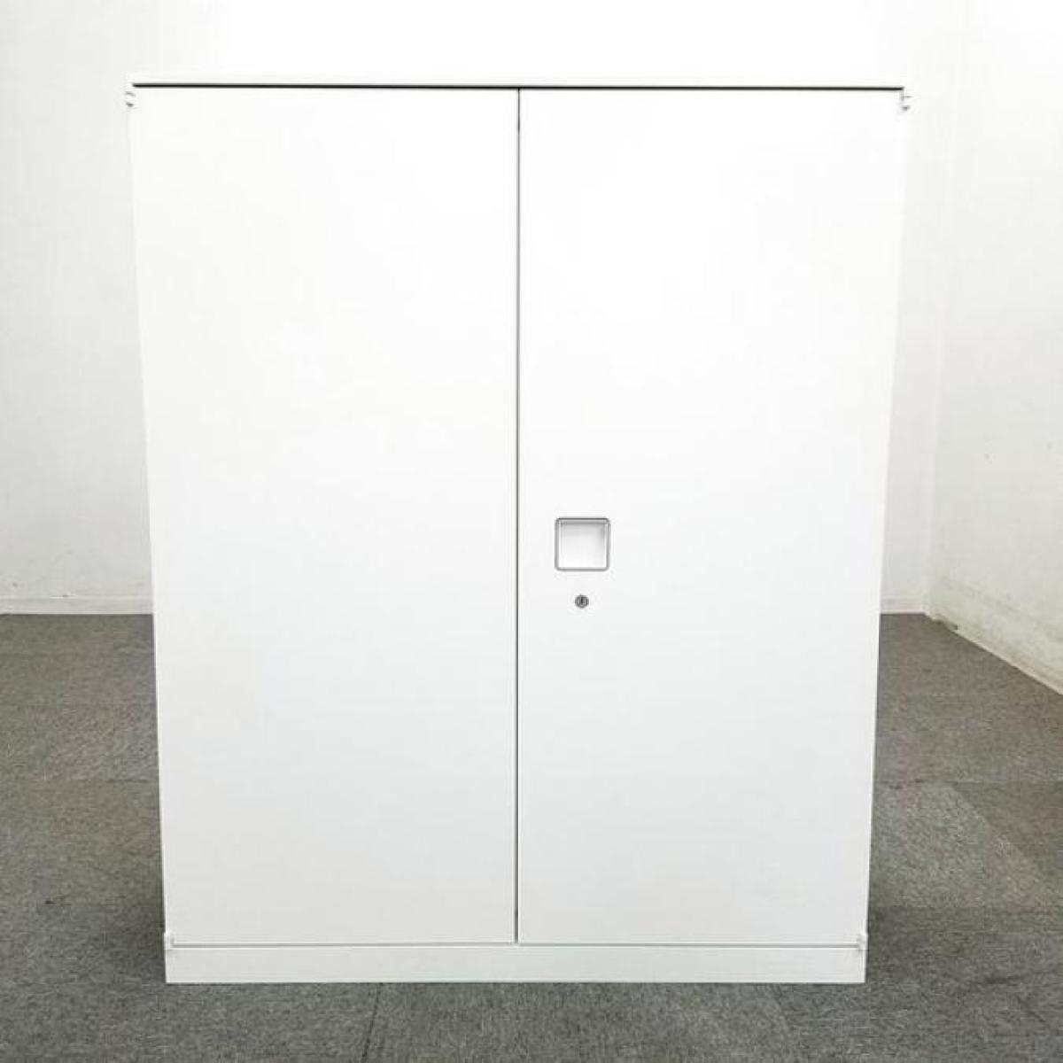■オカムラ(okamura)製 ■レクトラインシリーズ ■ローキャビネット ■両開き書庫 ■ホワイト ■シリンダー錠 【弊社使用欄:A01054680】【KN】