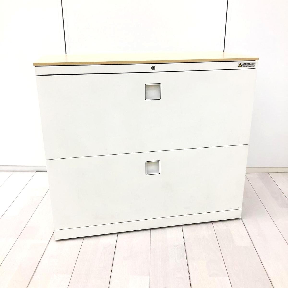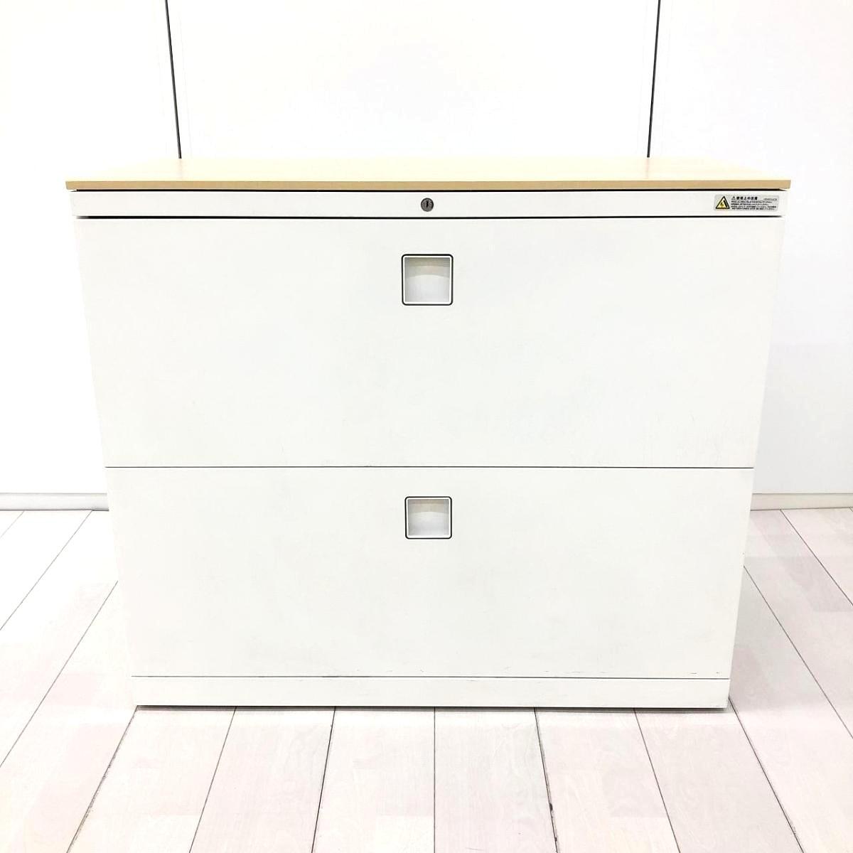 【578378】【奥行400㎜】【窓下の空間にもピッタリ!ナチュラル木目調天板付きのキャビネット!】■オカムラ(okamura)製 レクトライン(Rectline)シリーズ 2段ラテラル ローキャビネット H780㎜ ■シリンダー錠 ■ホワイト/天板:ナチュラル木目調 オフィスバスターズ 水戸サテライト 水戸市、日立市、ひたちなか市、鹿嶋市、神栖市、牛久市、古河市、結城市、東海村、つくば市- 水戸サテライト